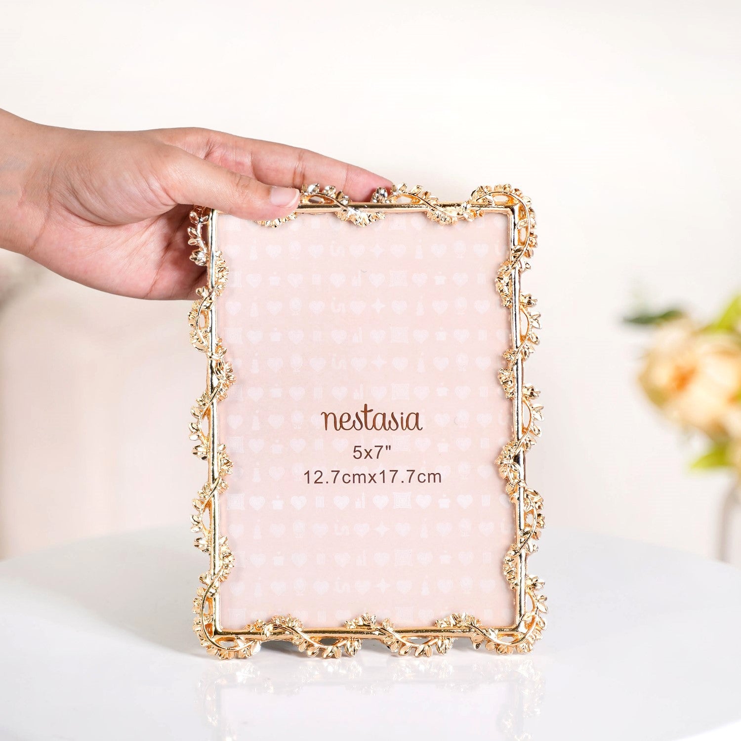 Add a hint of botanical elegance to your cherished moments with the picture frame sized 5x7”, a statement piece that combines craftsmanship and charm.