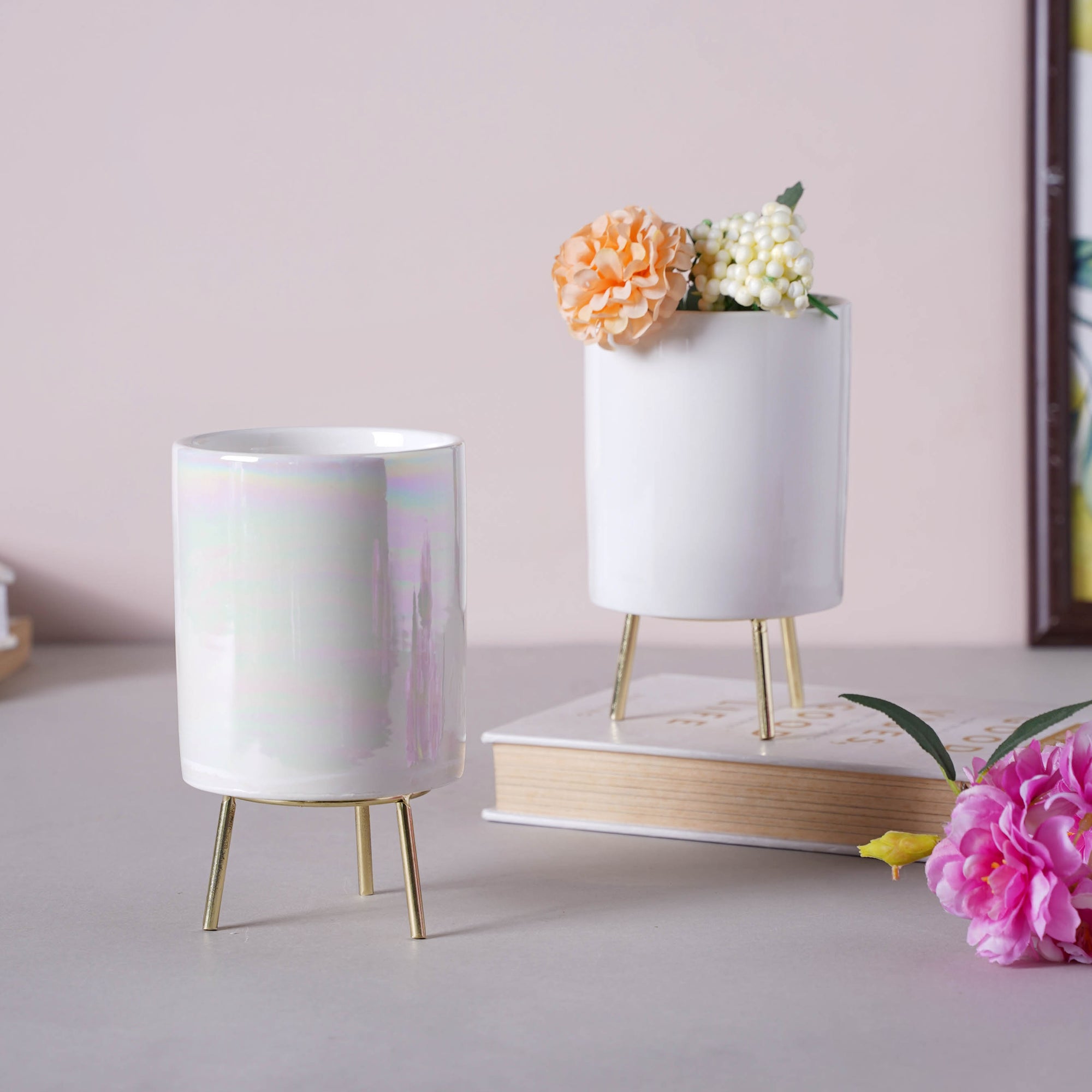 Delicately styled with perfection, the decorative indoor planters offer an urban and colorful look to the aesthetic of any home. Enjoy the glossy finish planter with a metal stand as a part of the décor. The planter has a pure concrete construction that offers a feeling of grandeur.