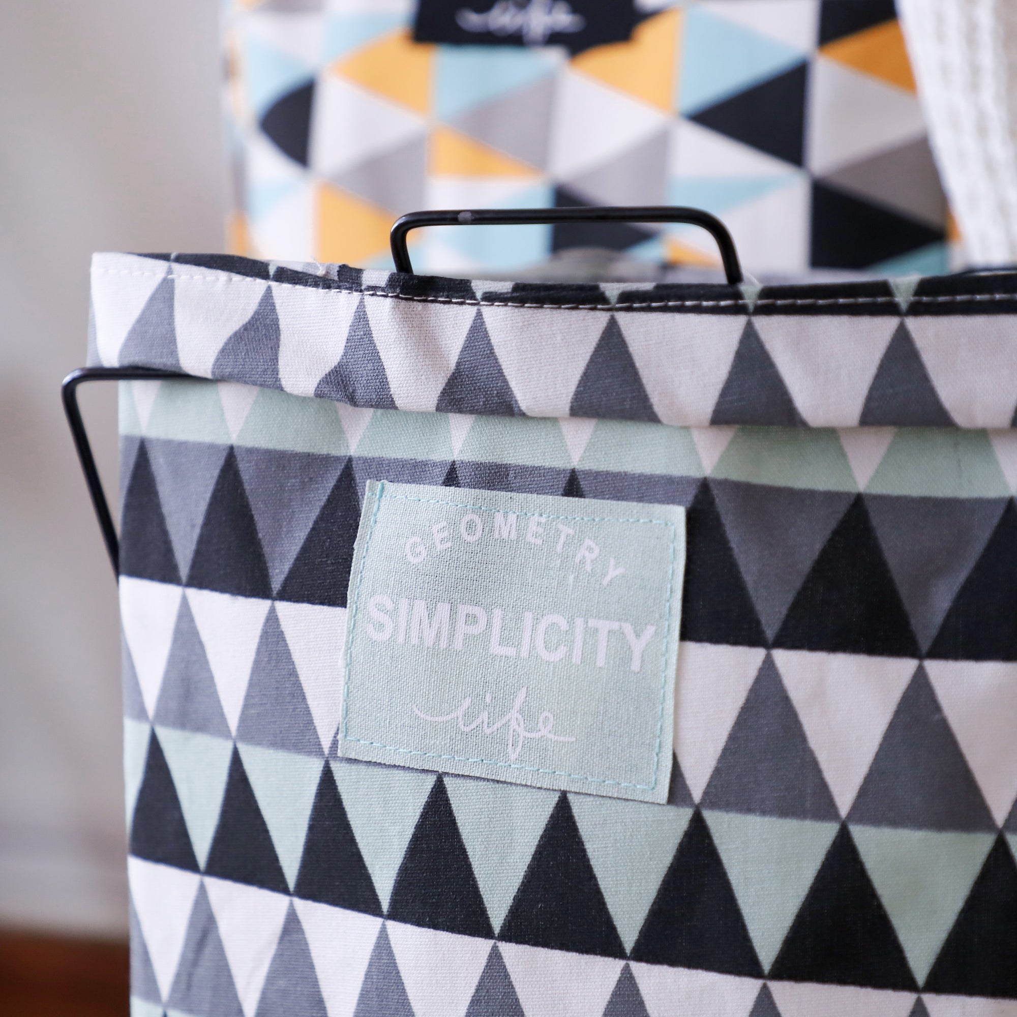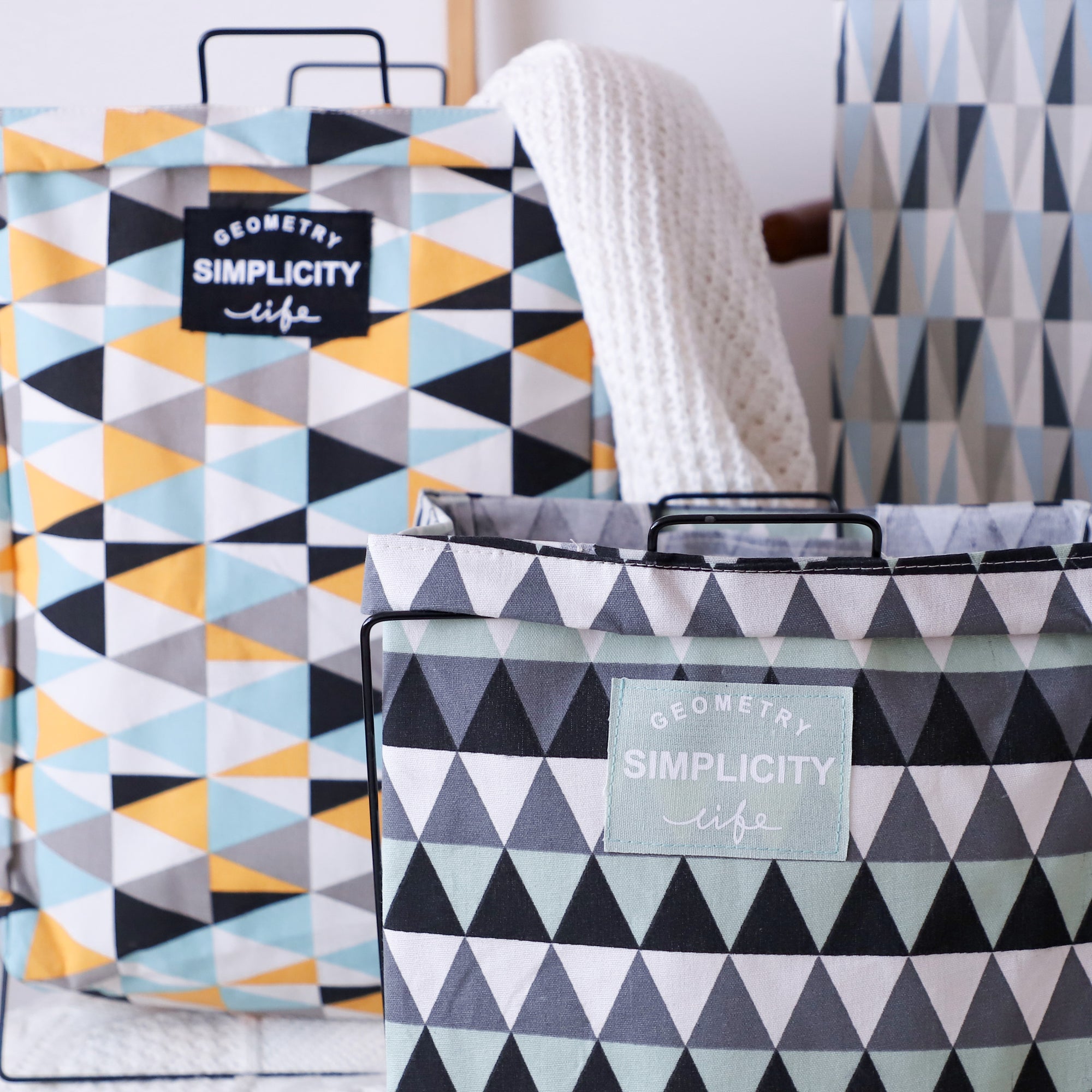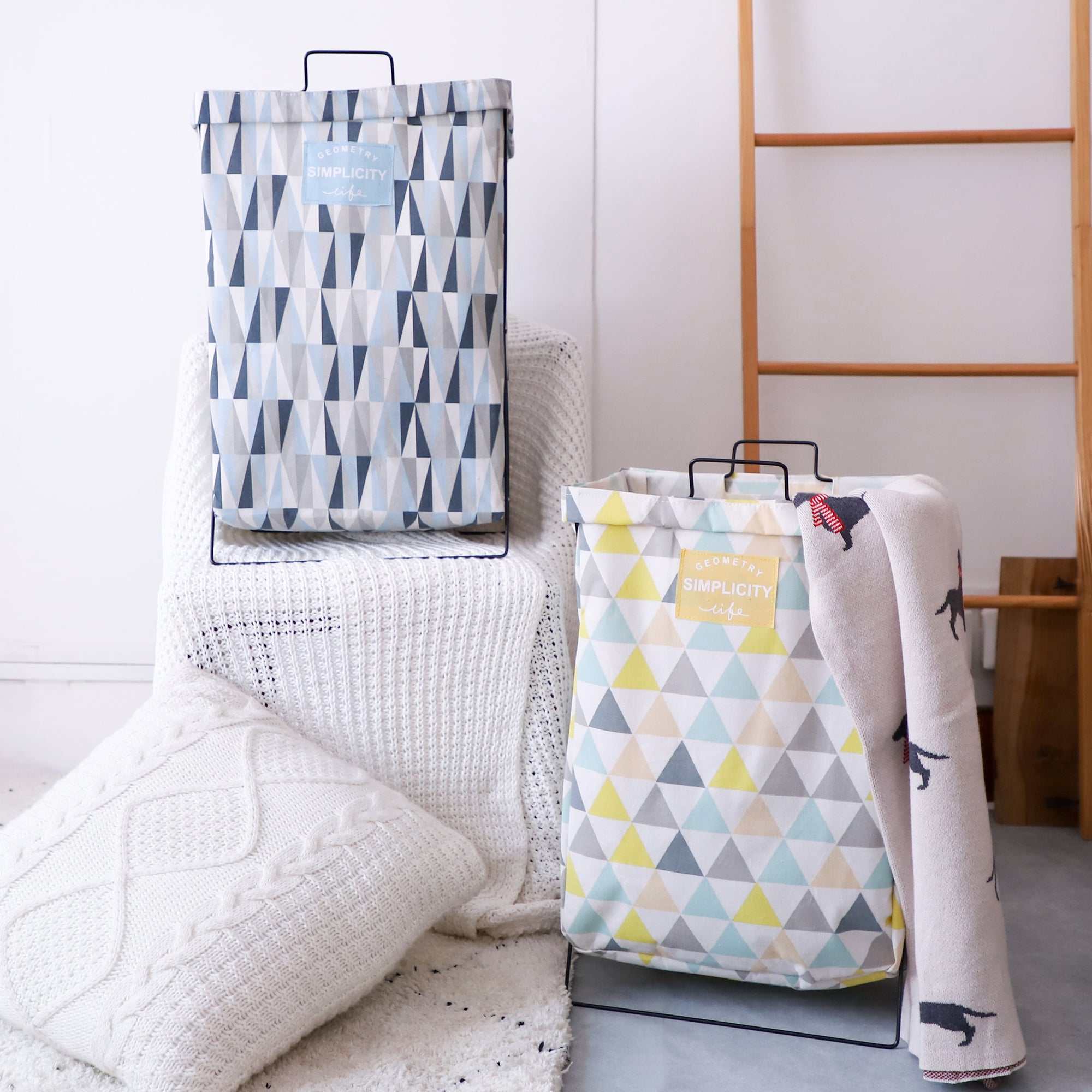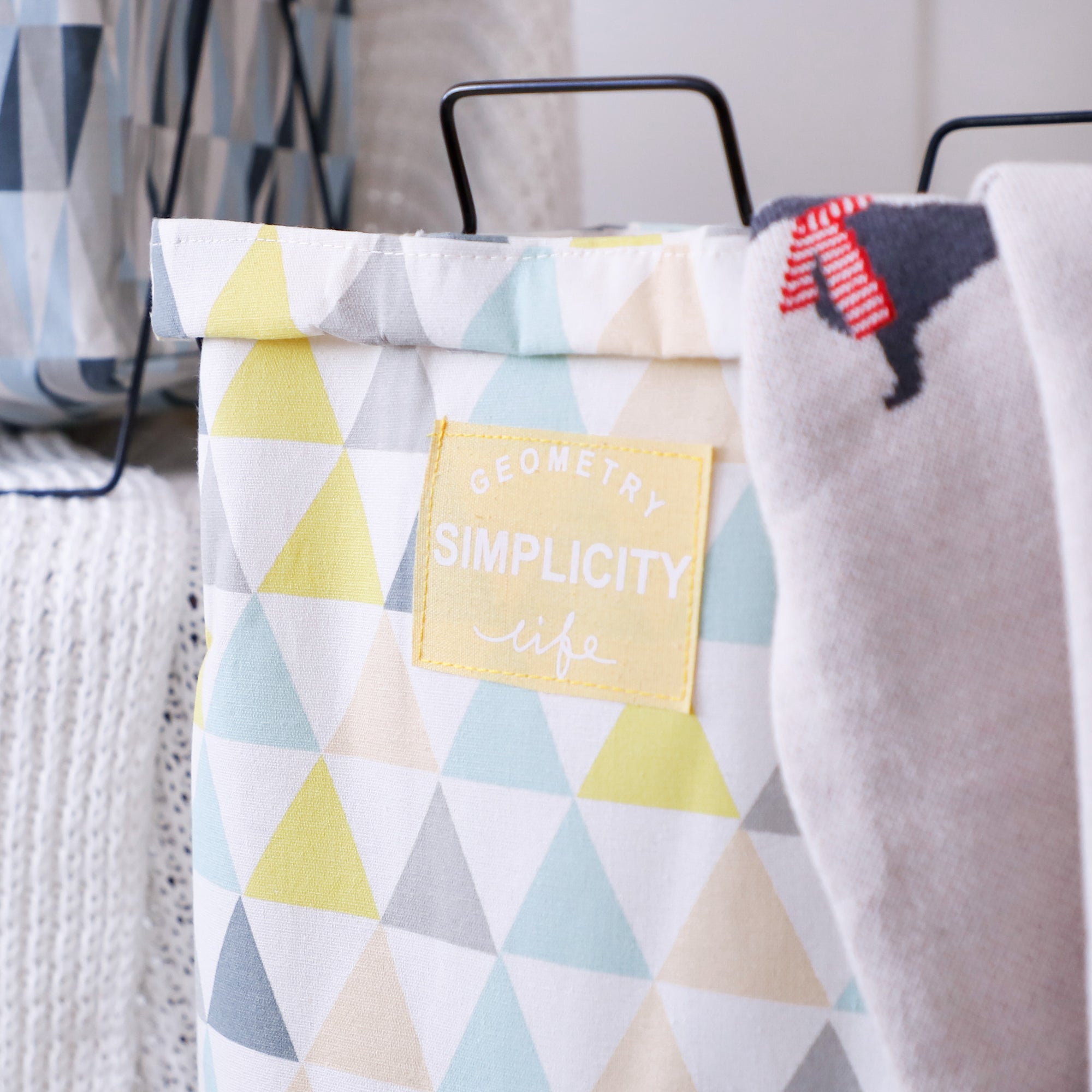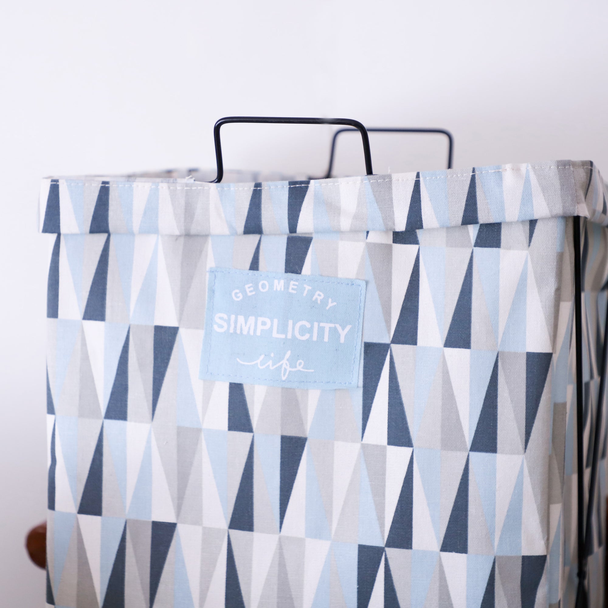 Laundry baskets that have colourful geometric prints and make for a fit in any modern or contemporary household. The baskets are available in 4 variants that come as a combination of metal stand, providing support to the bag. The fine prints on the fabric bring in the aesthetic for holding products like soiled clothes, cushions, throws, toys and more. The metal stand also gives a height to the bag and keeps it away from getting dirty from the base. The basket can be wiped when required to be cleaned.
