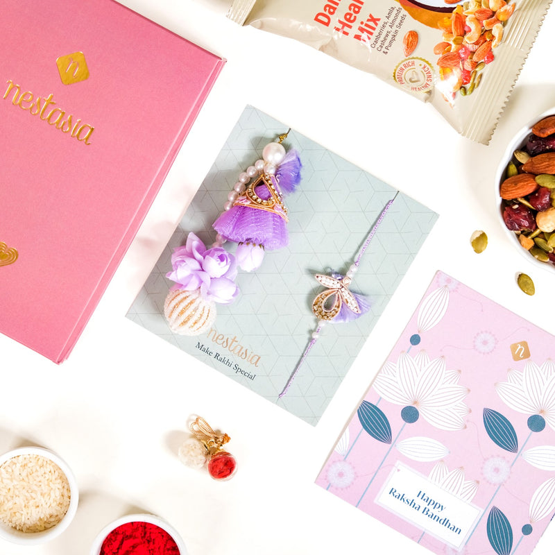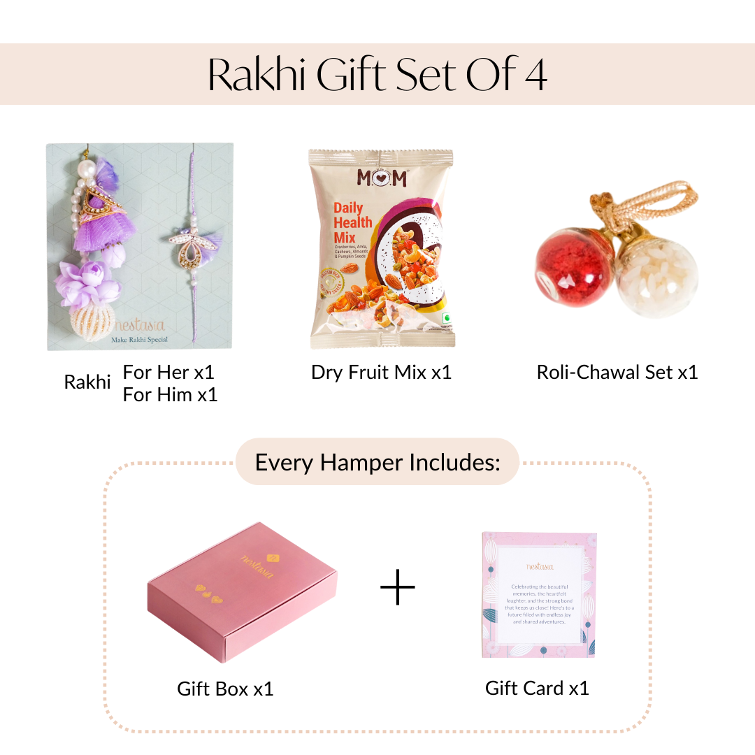 Lavender Couple Rakhi Gift Set Of 4 With Box And Card
