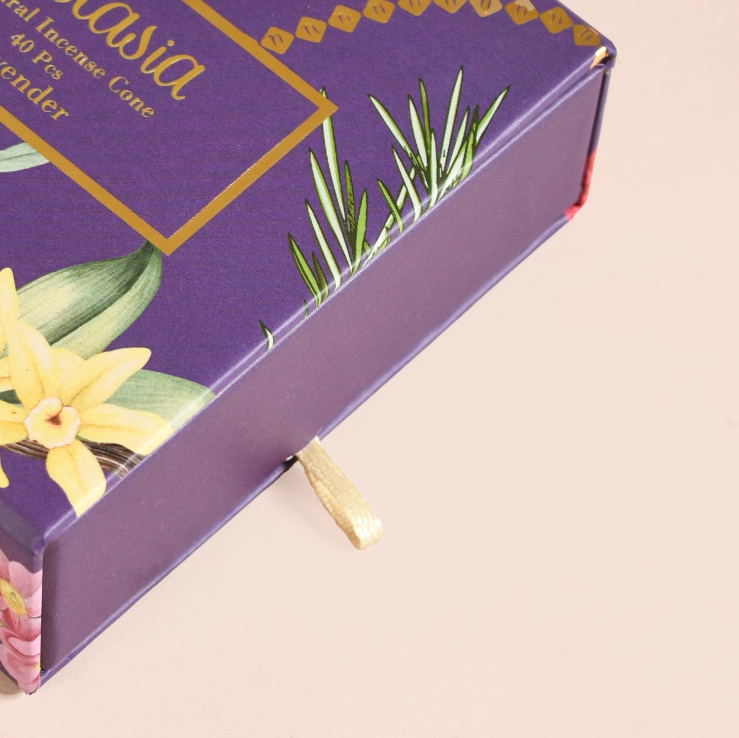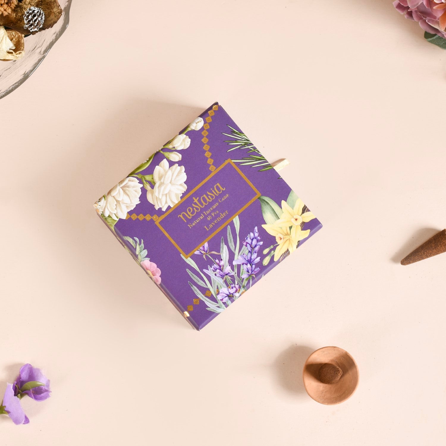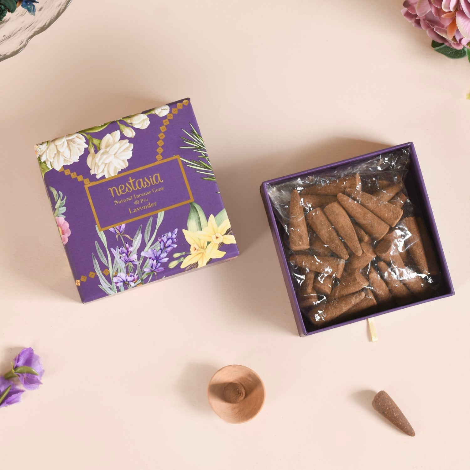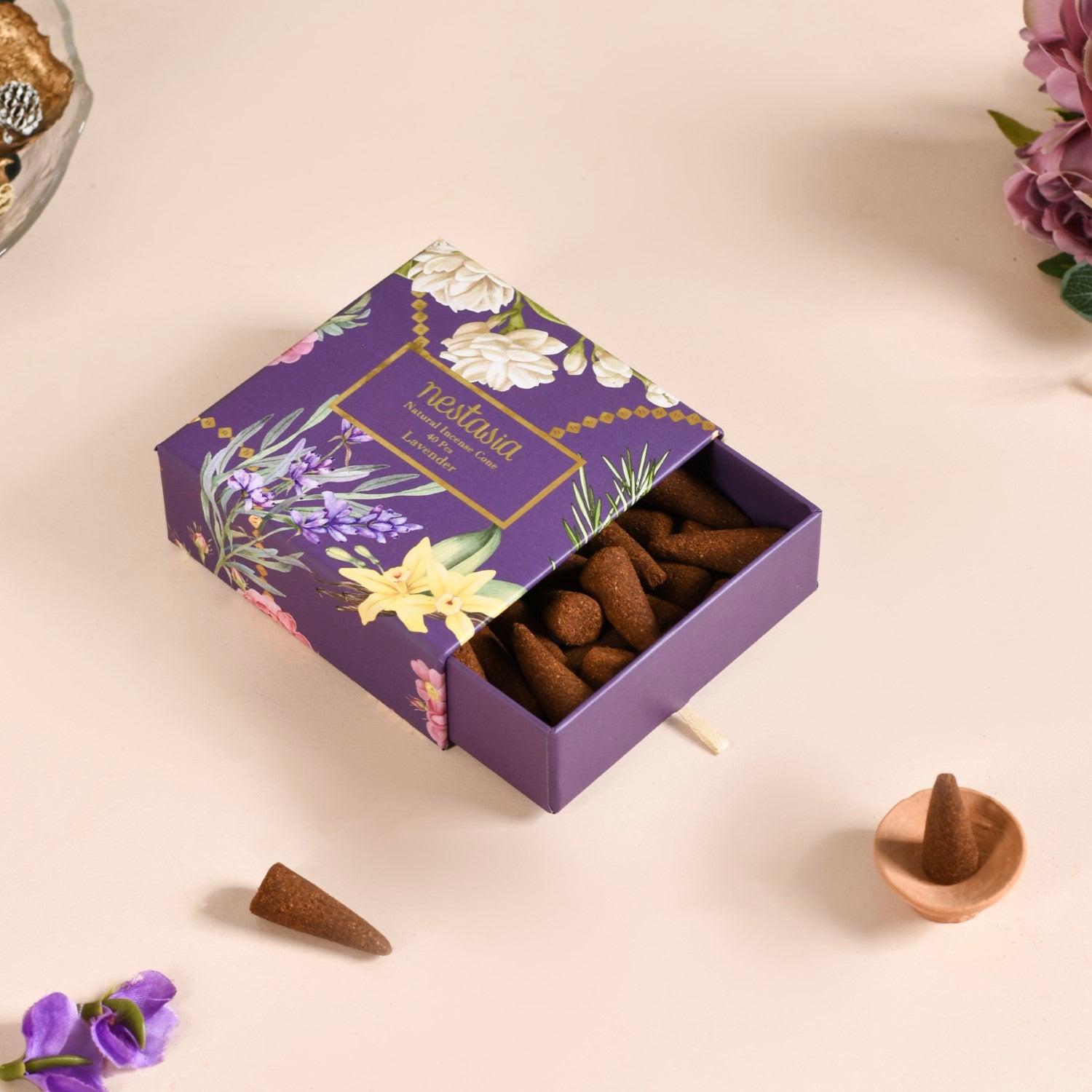 The lavender incense cones are a great way to enhance your mood with the sweet aroma of lavender and the purity of the incense. The incense cones have all the aroma-therapeutic benefits that will help you relax and stay calm. The incense cones are great for everyday use during meditation, yoga, or puja. Our incense cones are of great benefit and can help you reduce stress and anxiety with their rich aroma.
