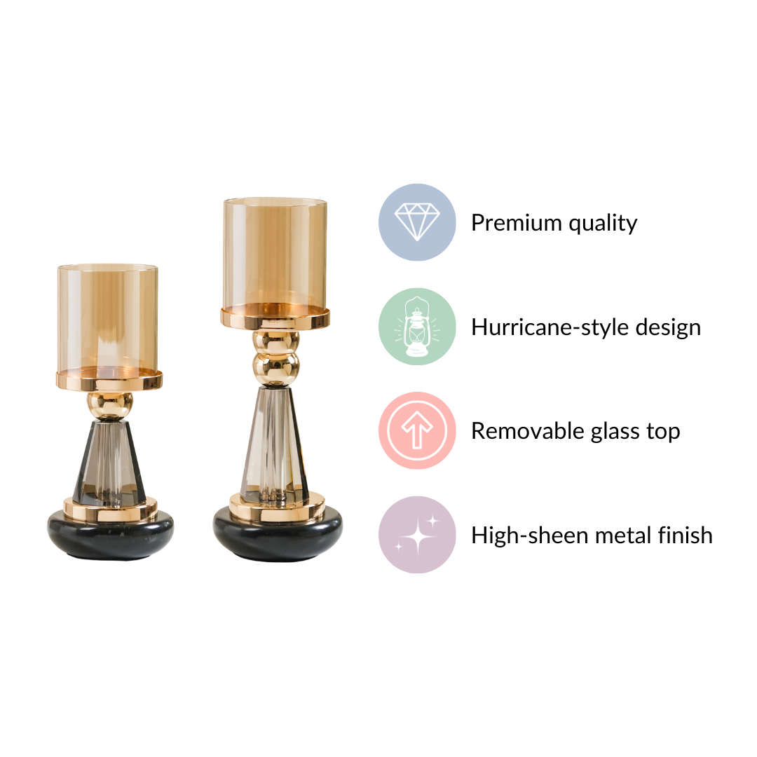 The removable glass case of these candle holders adds a functional and elegant feature that not only enhances the safety and usability of the candle holders but also adds to its overall aesthetic charm. It provides a clear view of the candle's beauty while protecting it and creating a captivating ambiance when the candle is lit.