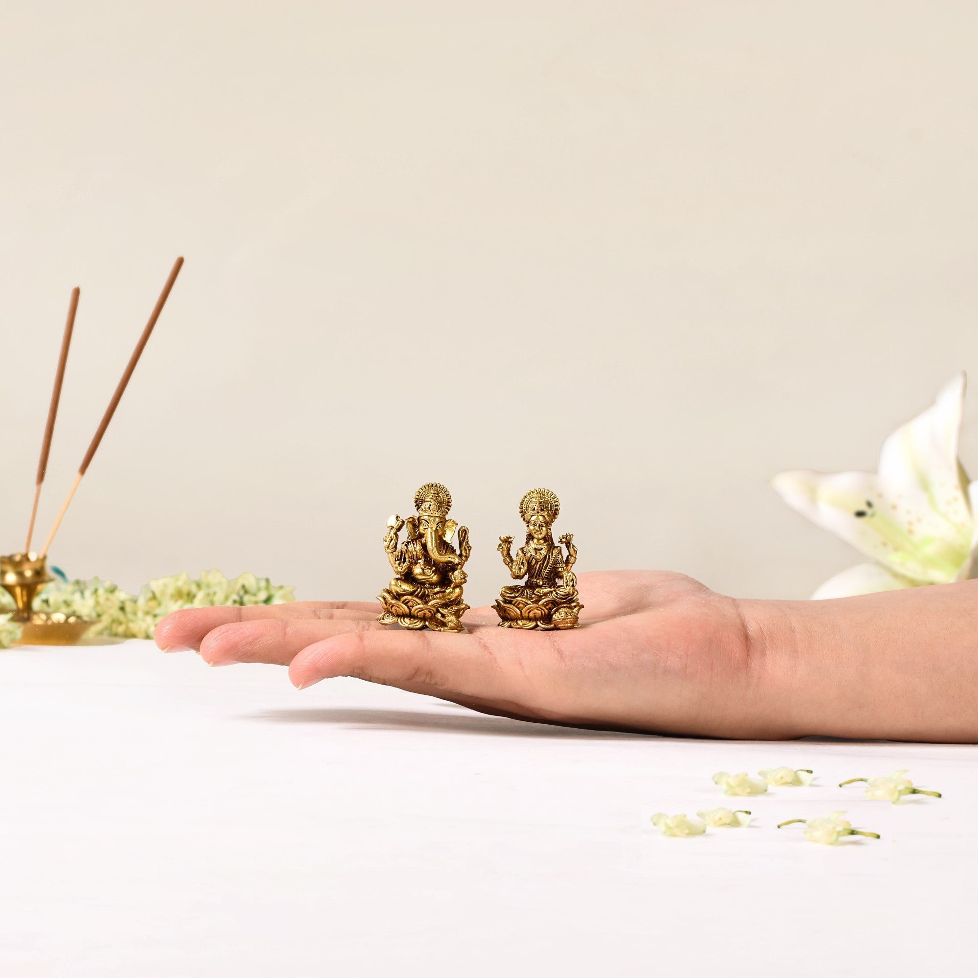 Though I expected it to be slightly bigger in size, but when I unboxed the package, i just loved how small the idol set was, and still the craving on it was done so nicely.I ended up ordering one more set to gift to my best friend.
