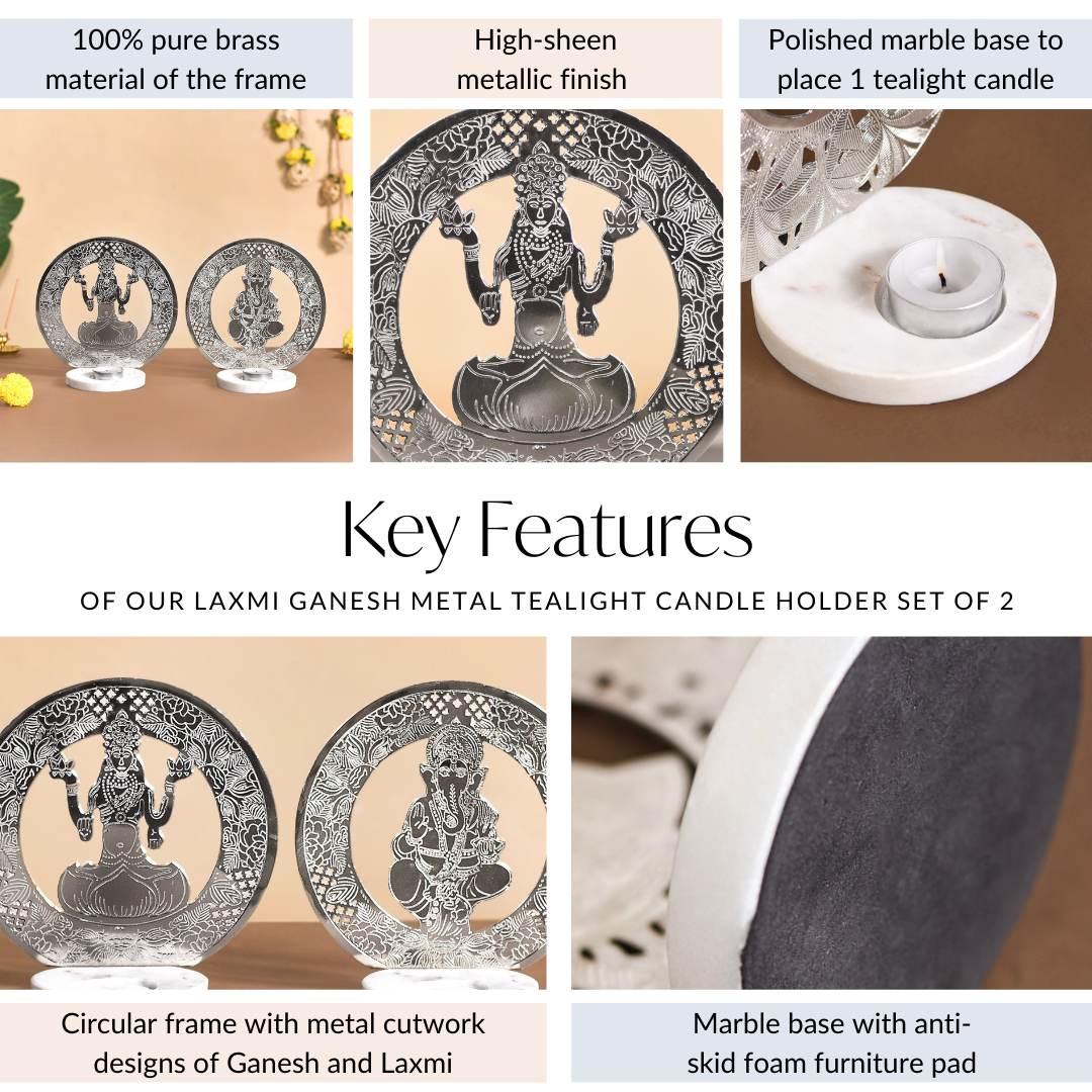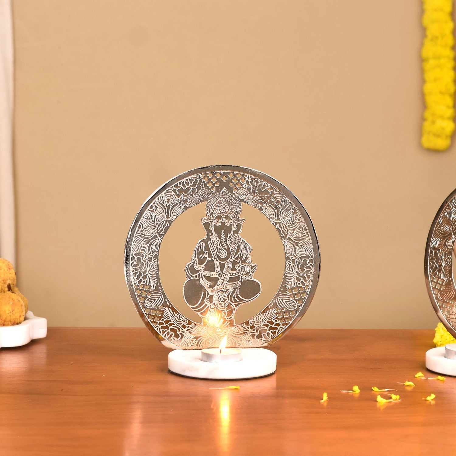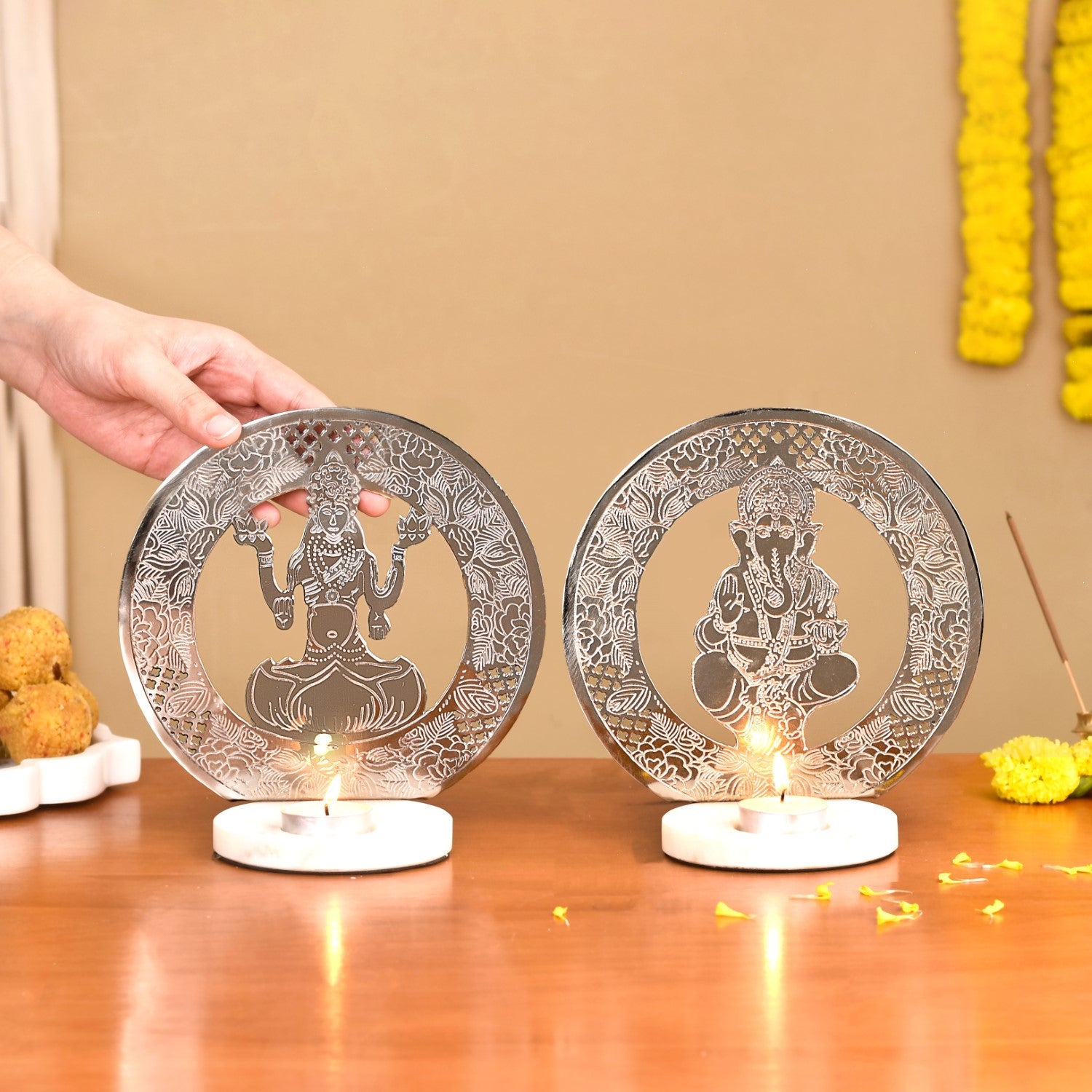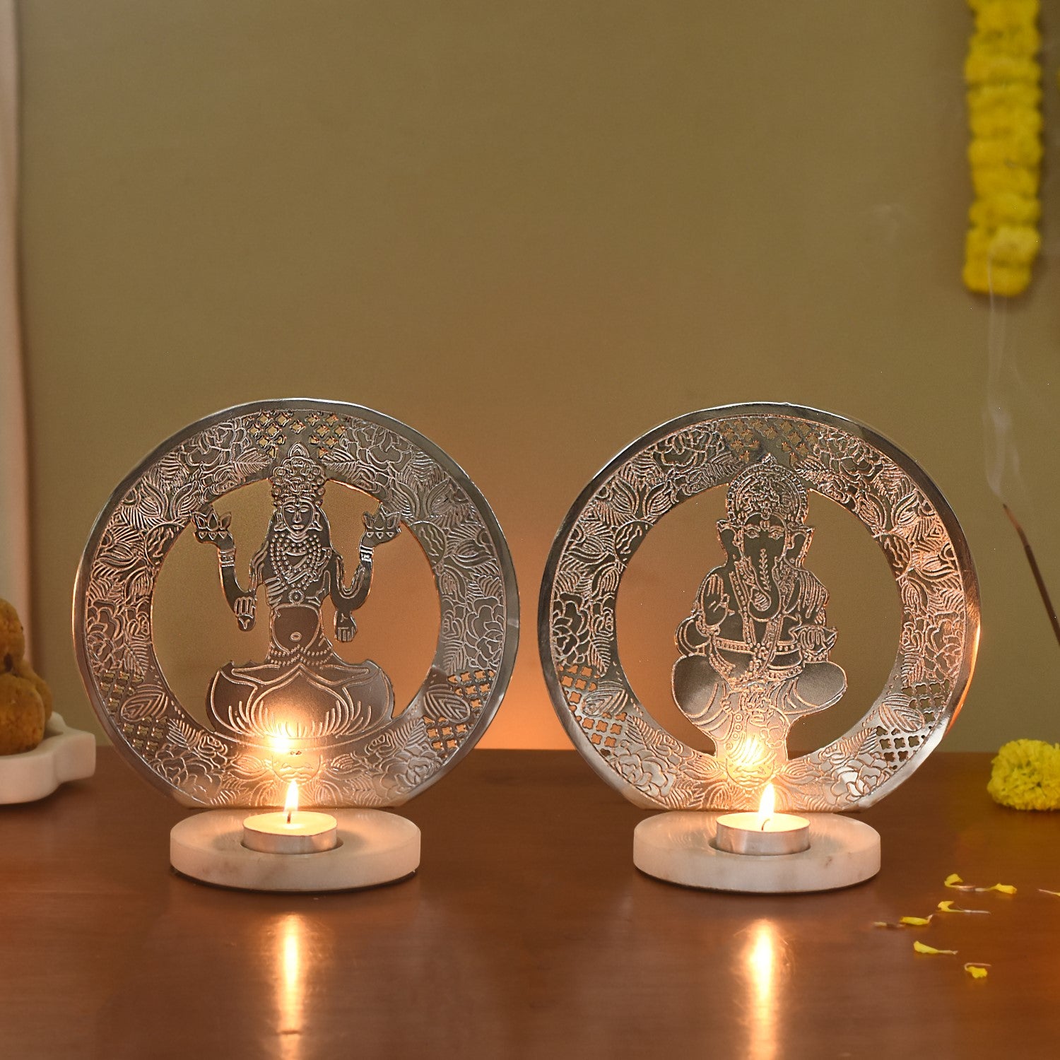 Laxmi Ganesh Metal Tealight Candle Holder Set Of 2