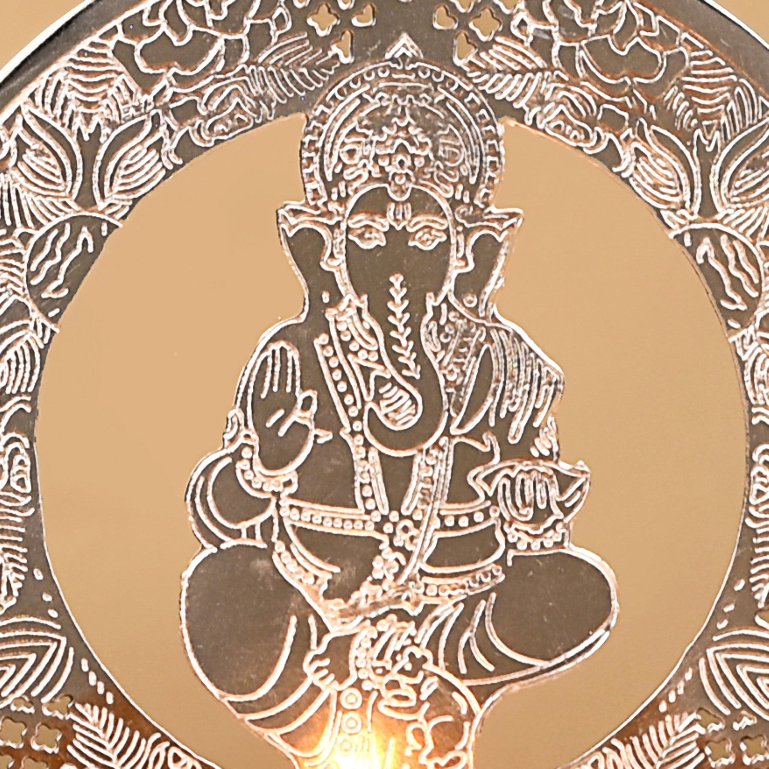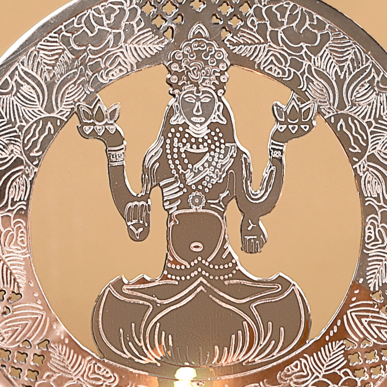 Circular frame with metal cutwork designs of Ganesh and Laxmi
