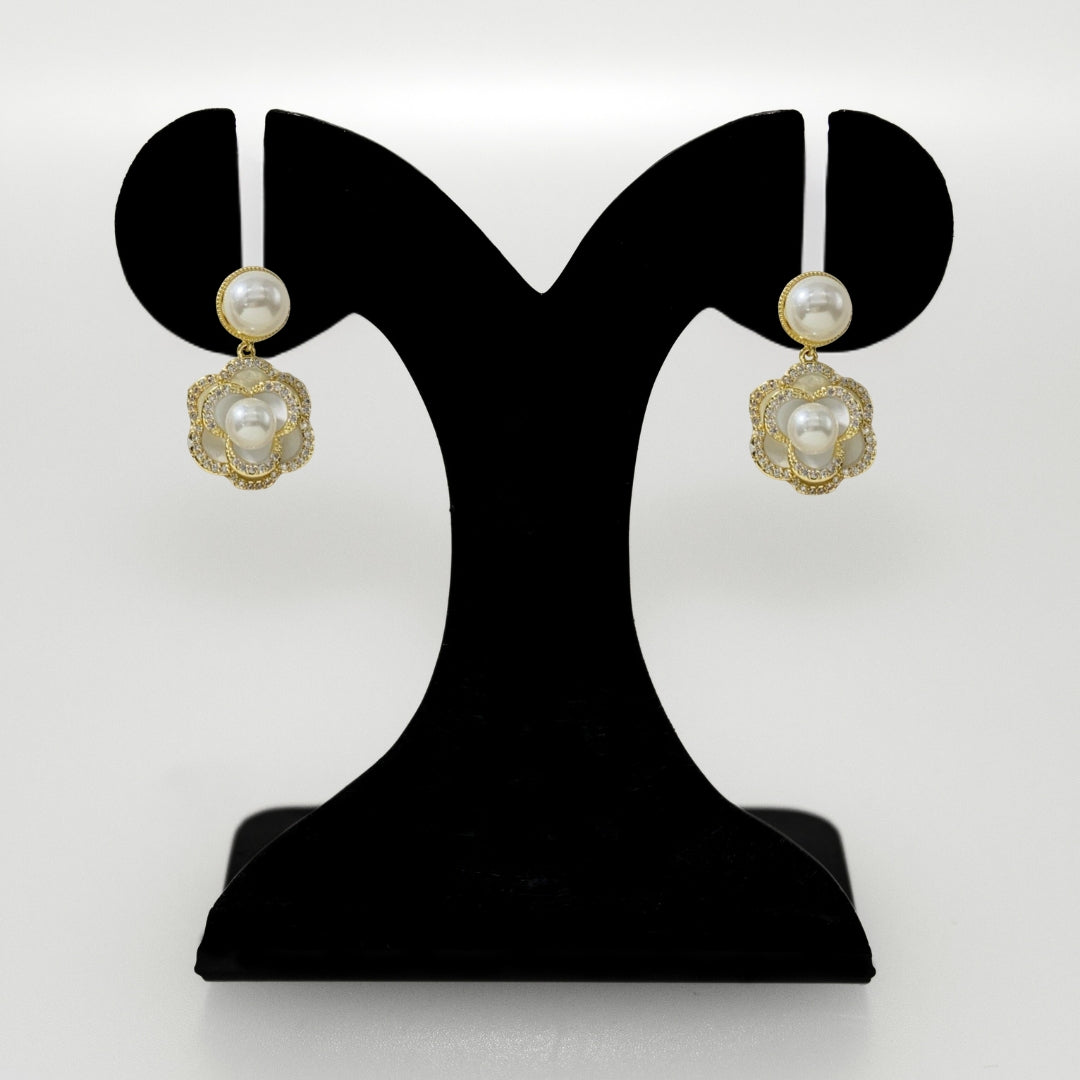 Delicately complex yet intricately minimalistic, these dangle earrings perfectly showcase the beauty of simplicity. Inspired by the timeless elegance of nature’s blooms, they embody a soft, romantic charm. The design features soft faux pearls, complemented by floral motifs with subtle diamante accents that shimmer with every movement. The enamel coating allows the earrings to capture the essence of delicate sophistication.