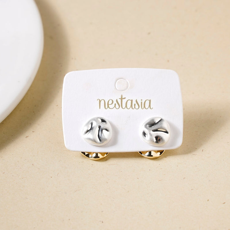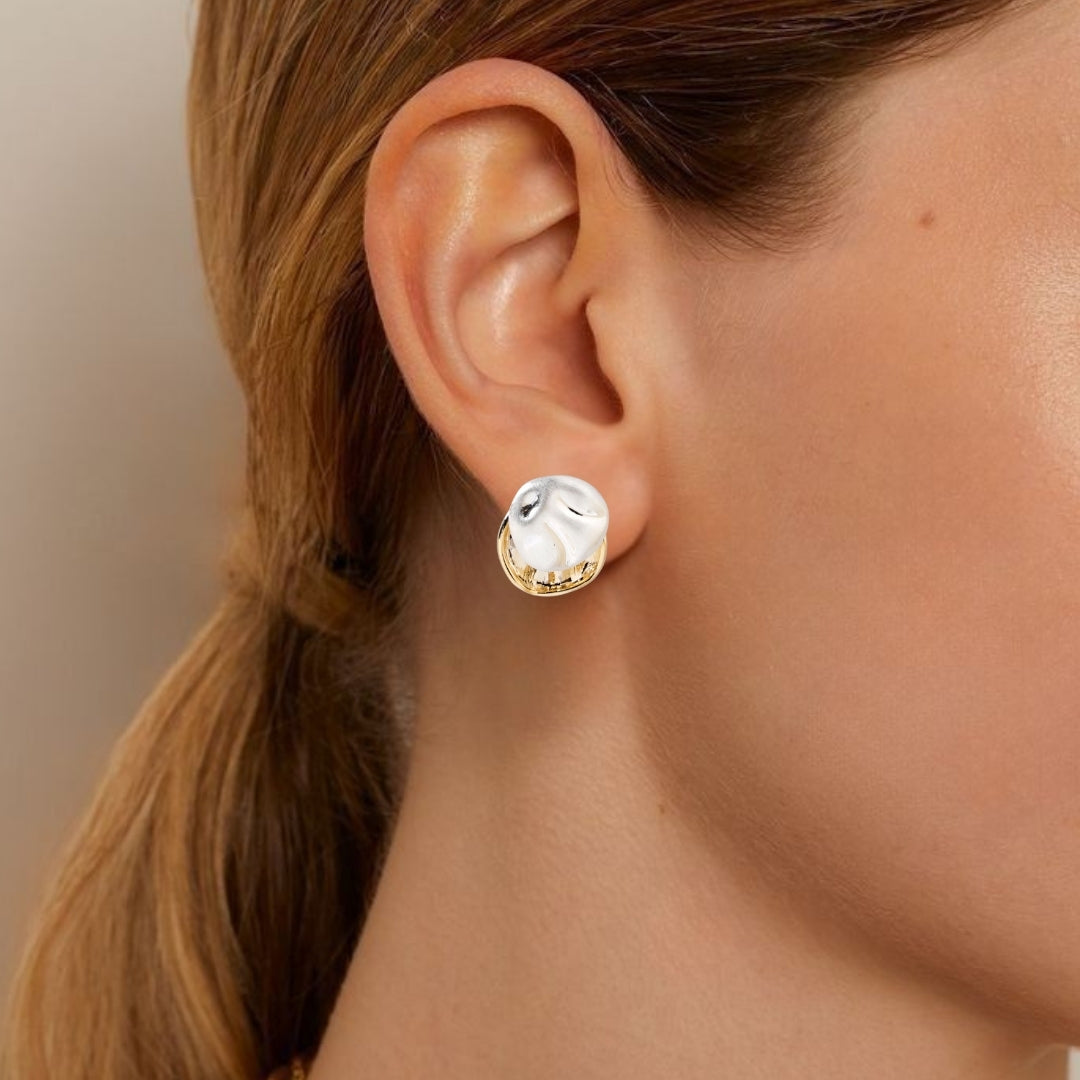 ays been about layering - whether it’s in paintings, fashion, or the textures we see around us. The beauty lies in how each layer builds upon the other, creating depth, dimension, and a story. These stunning layered earrings take that very concept and bring it to life in the world of jewelry. Featuring an abstract, beaten-up gold base that’s as bold as it is unique, this piece is designed to make a statement. On top of that sits a sleek, beaten silver surface that brings in a modern touch and makes this earring truly versatile. The magic lies in the art of layering – the silver part can be worn alone for a more minimalist look or paired with the gold base for that full-on statement vibe.