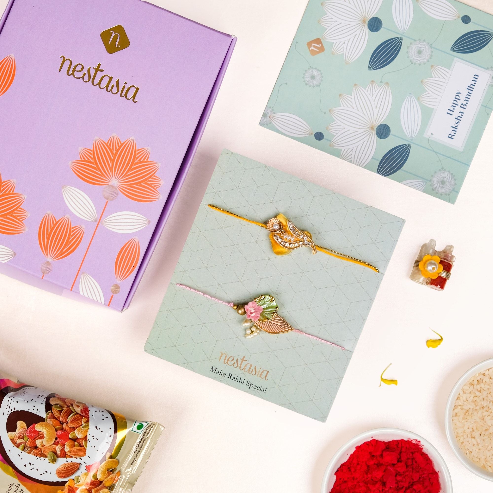 Whether they’re the calm to your storm or the one who always leaves a trail of laughter, celebrate your bond with the leaf embossed rakhi set of 2. It’s the perfect Raksha Bandhan pick for the nature-loving sibling who brings peace, balance, and a bit of grounding charm to your life.