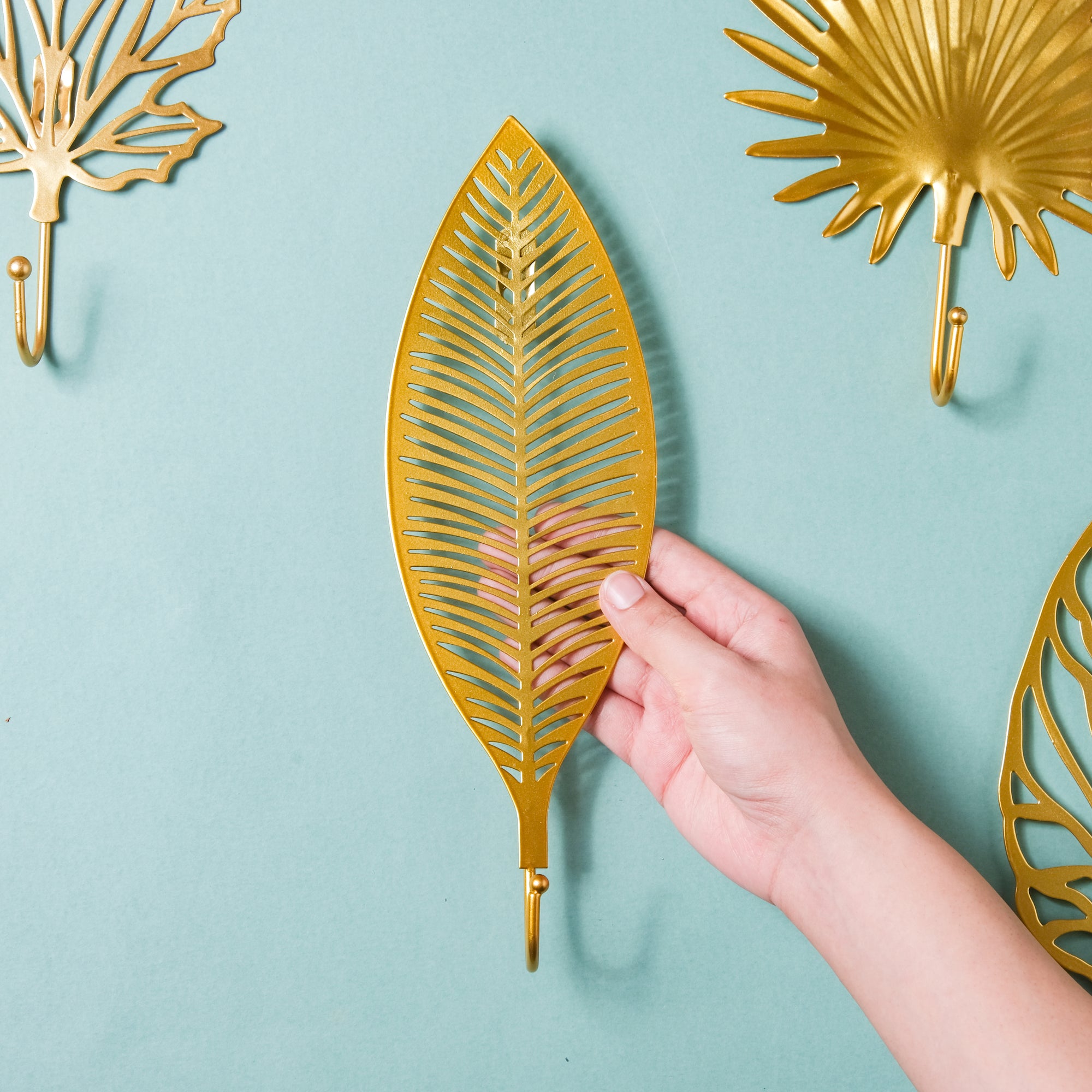Decorative golden hooks made of excellent quality metal with a single hook for hanging planters from them. The exquisite hooks are convenient to use and to install and are sturdy enough to last for years. Suitable for use in the living room, bedroom, kitchen or bathroom even - the beautiful leaf shaped hook will be perfect for hang small items in the house while also taking the decor game up a notch.