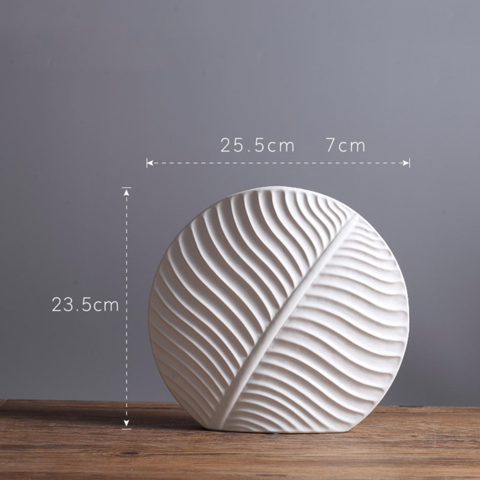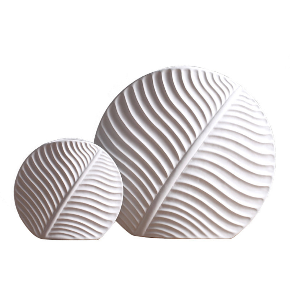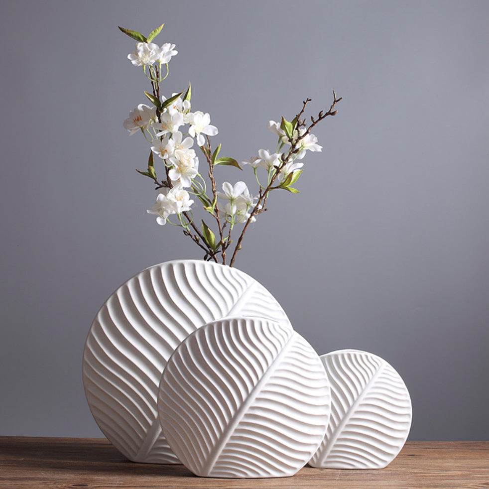 The white leaf shaped vase is minimalistic, sleek and gives a contemporary vibe that will add style to the table tops and shelves. It gives a tasteful complement to floral arrangements and can be used in the living room, dining space, tv consoles and more.