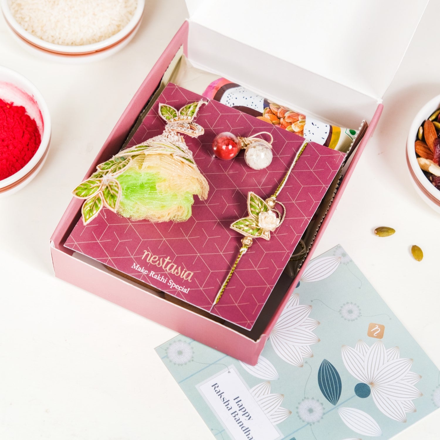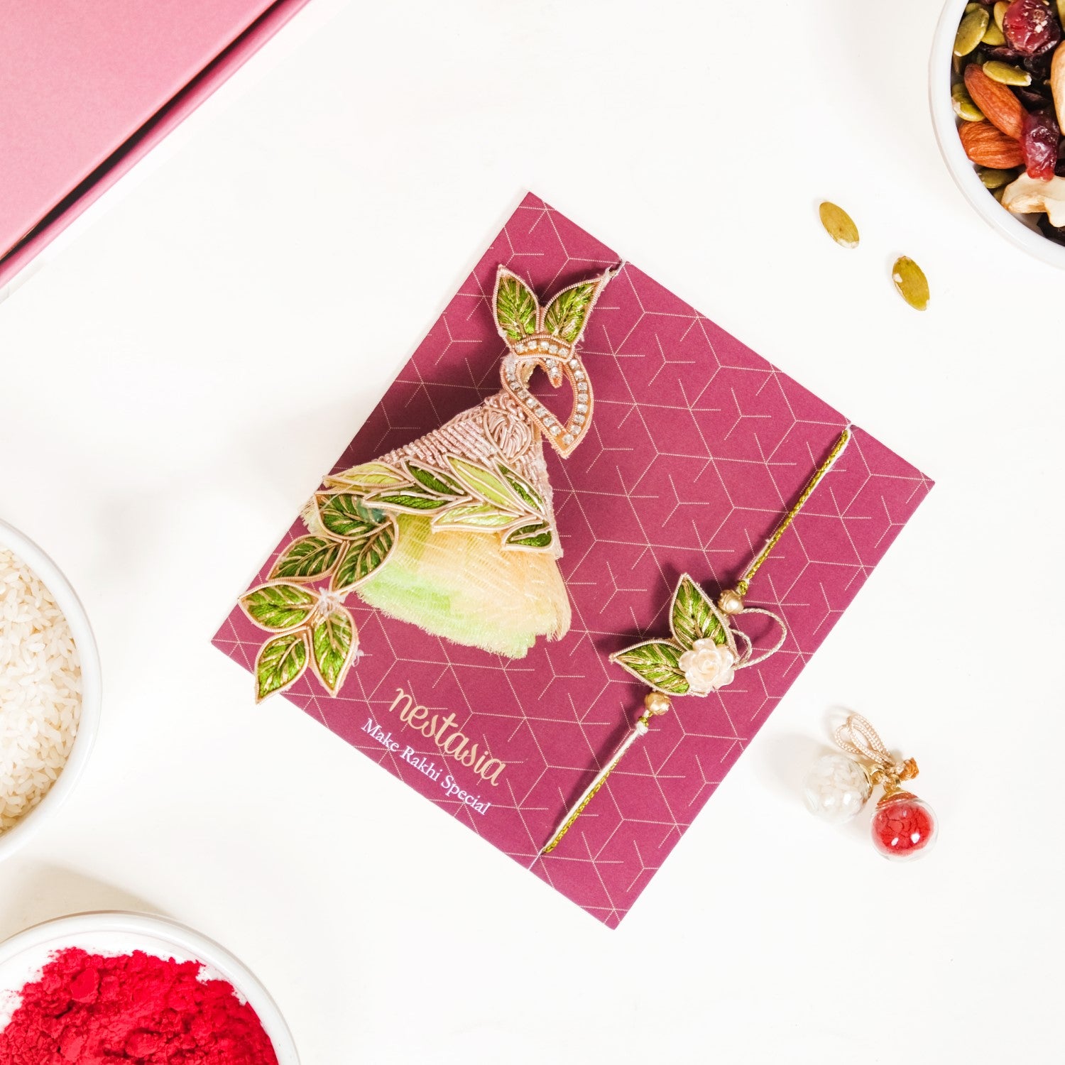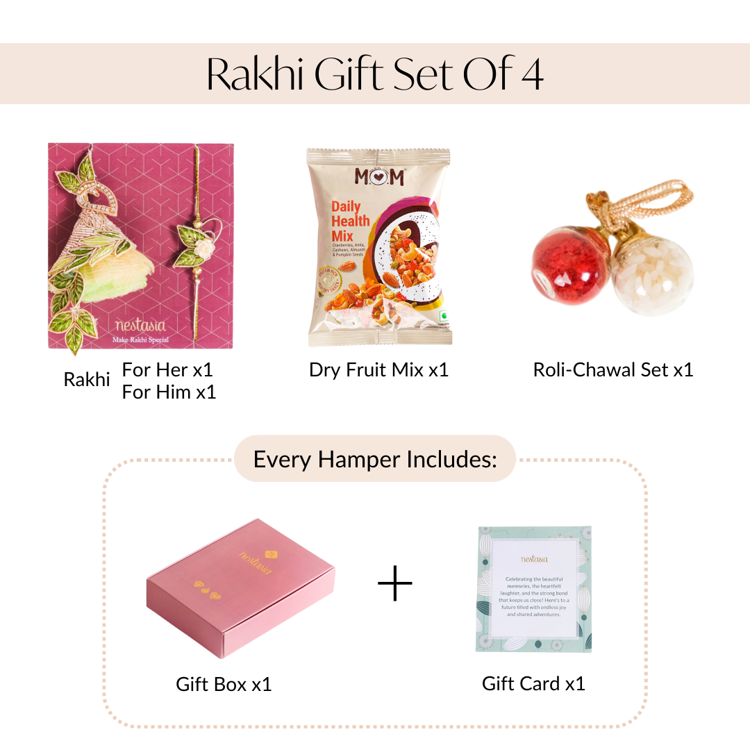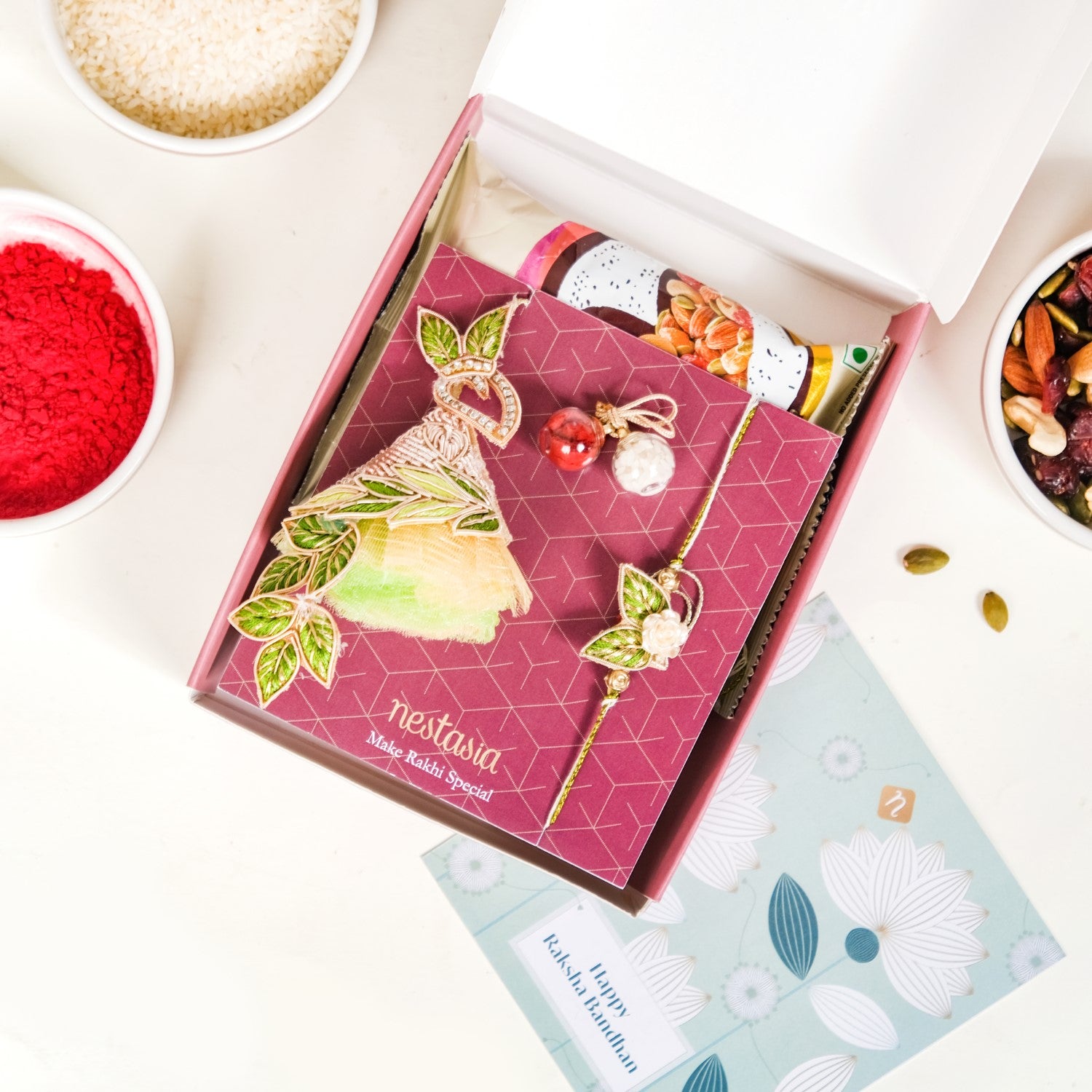 Leafy Artisanal Rakhi Lumba Hamper Set Of 4 With Box And Card