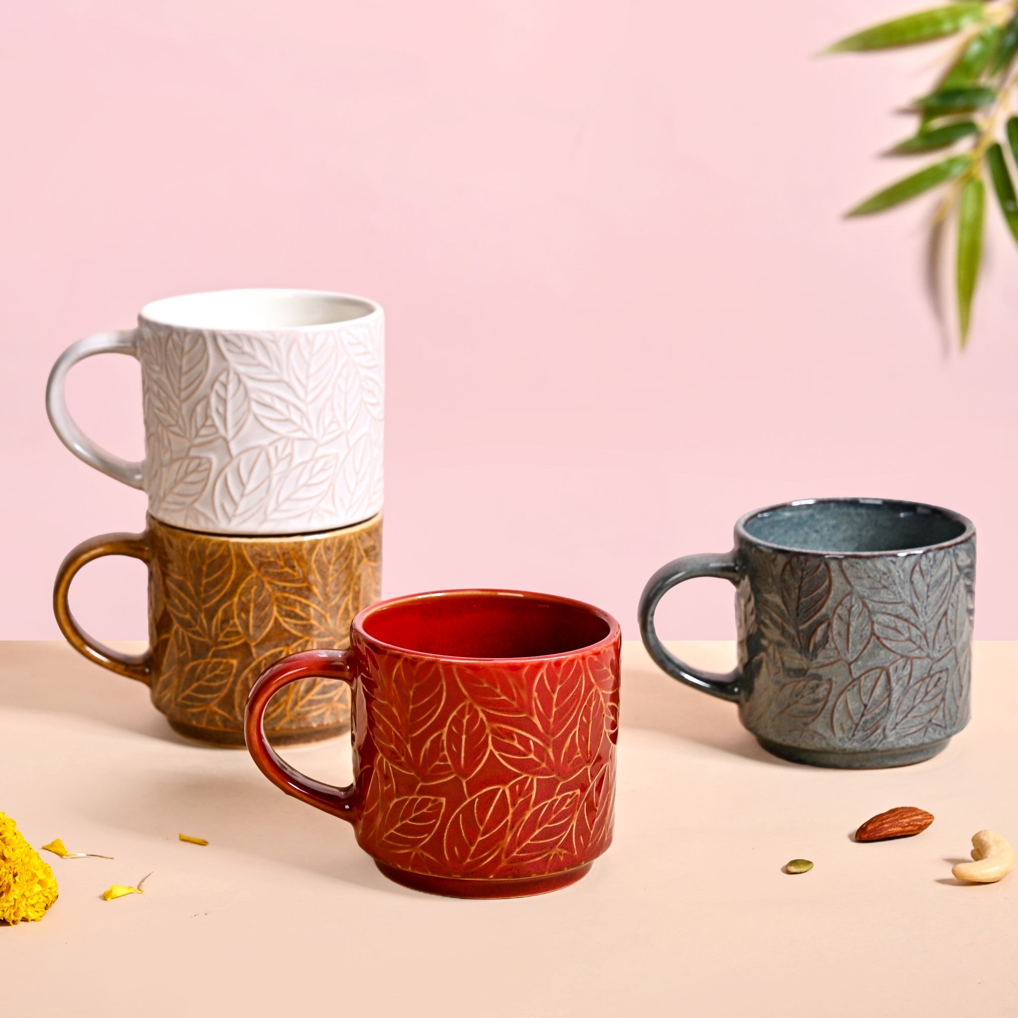 Sienna Leaf Embossed Ceramic Tea Cup Set Of 4 250ml |