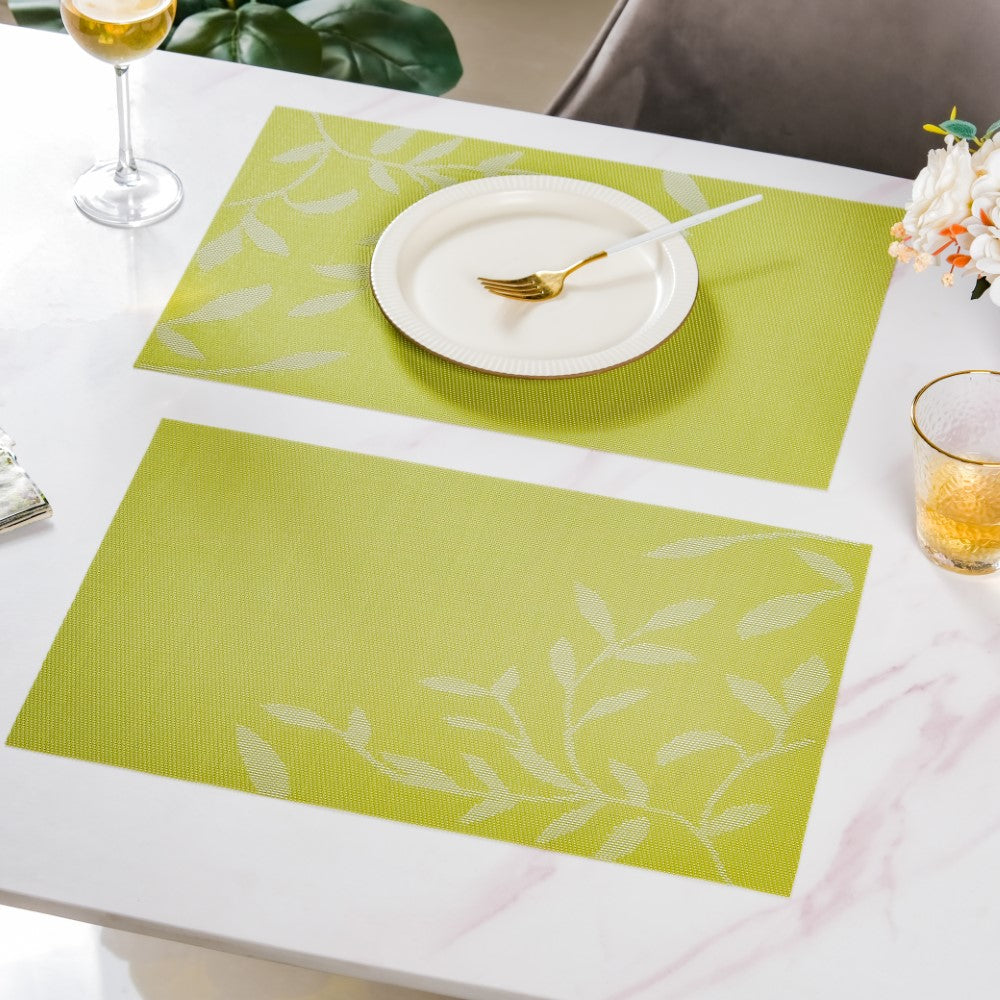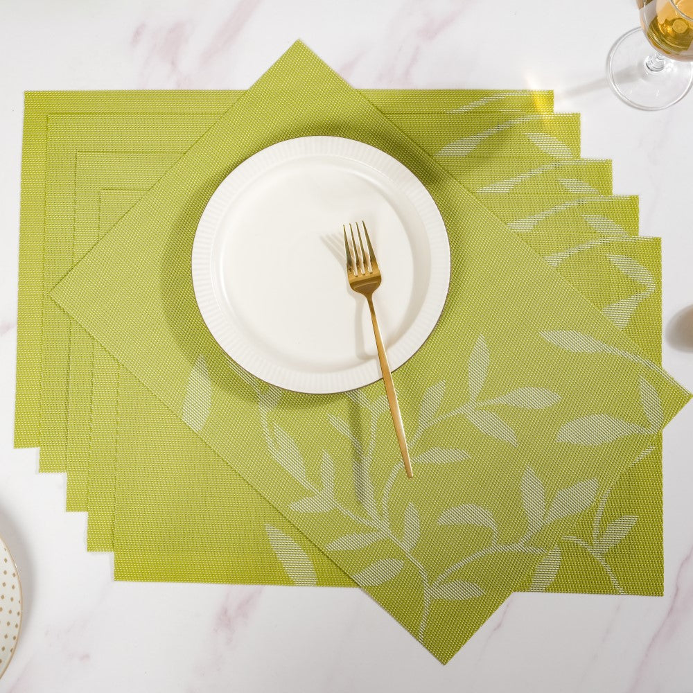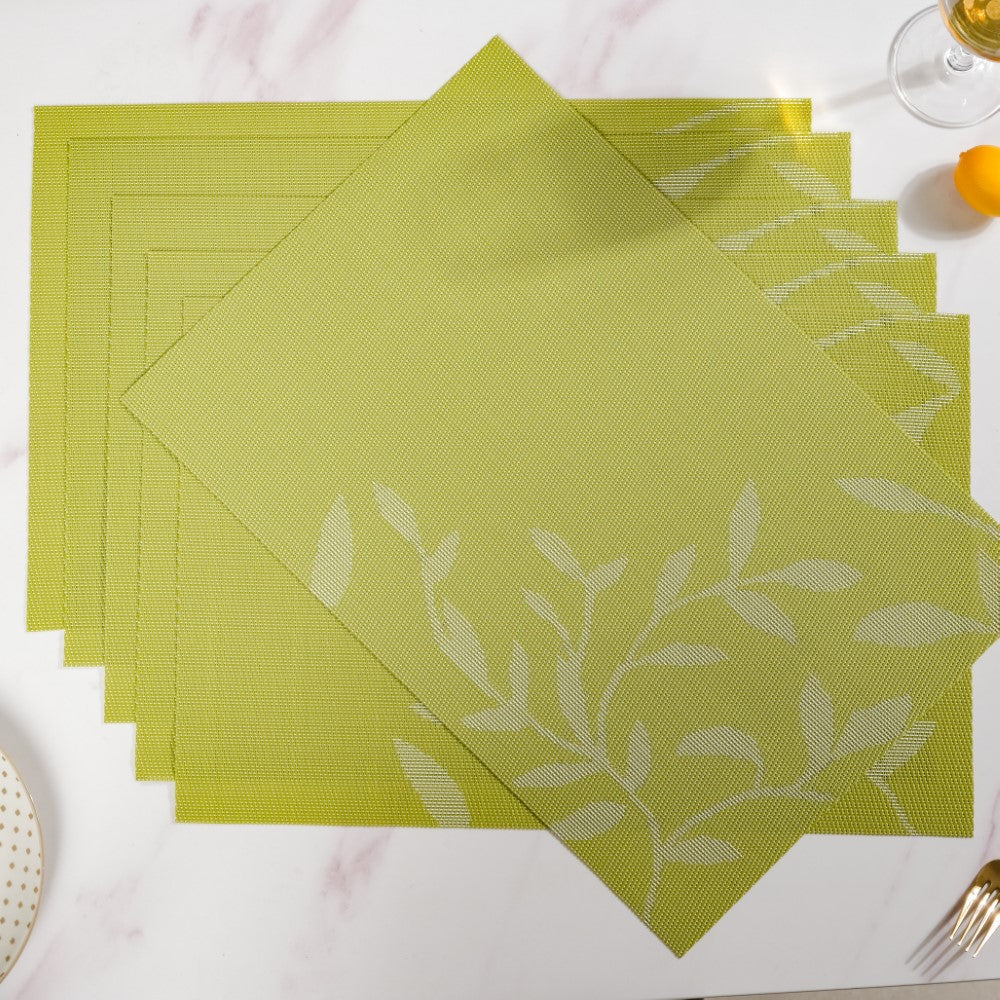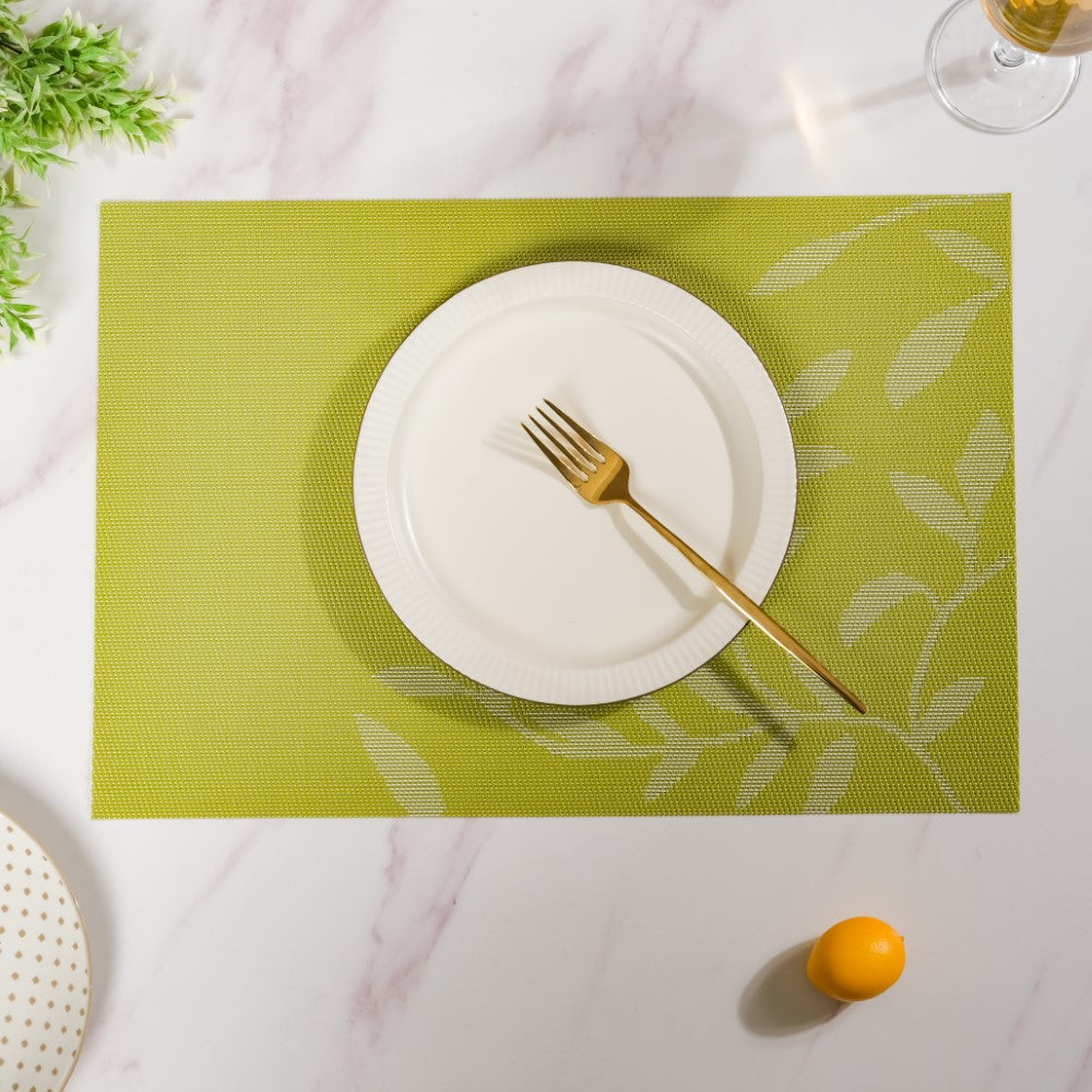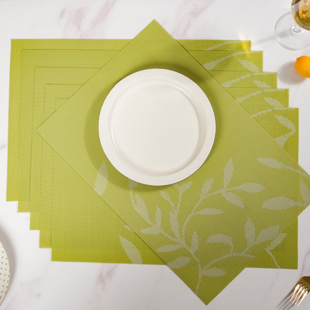 Leaves Reversible Table Mat Set Of 6 Green 17x11 Inch