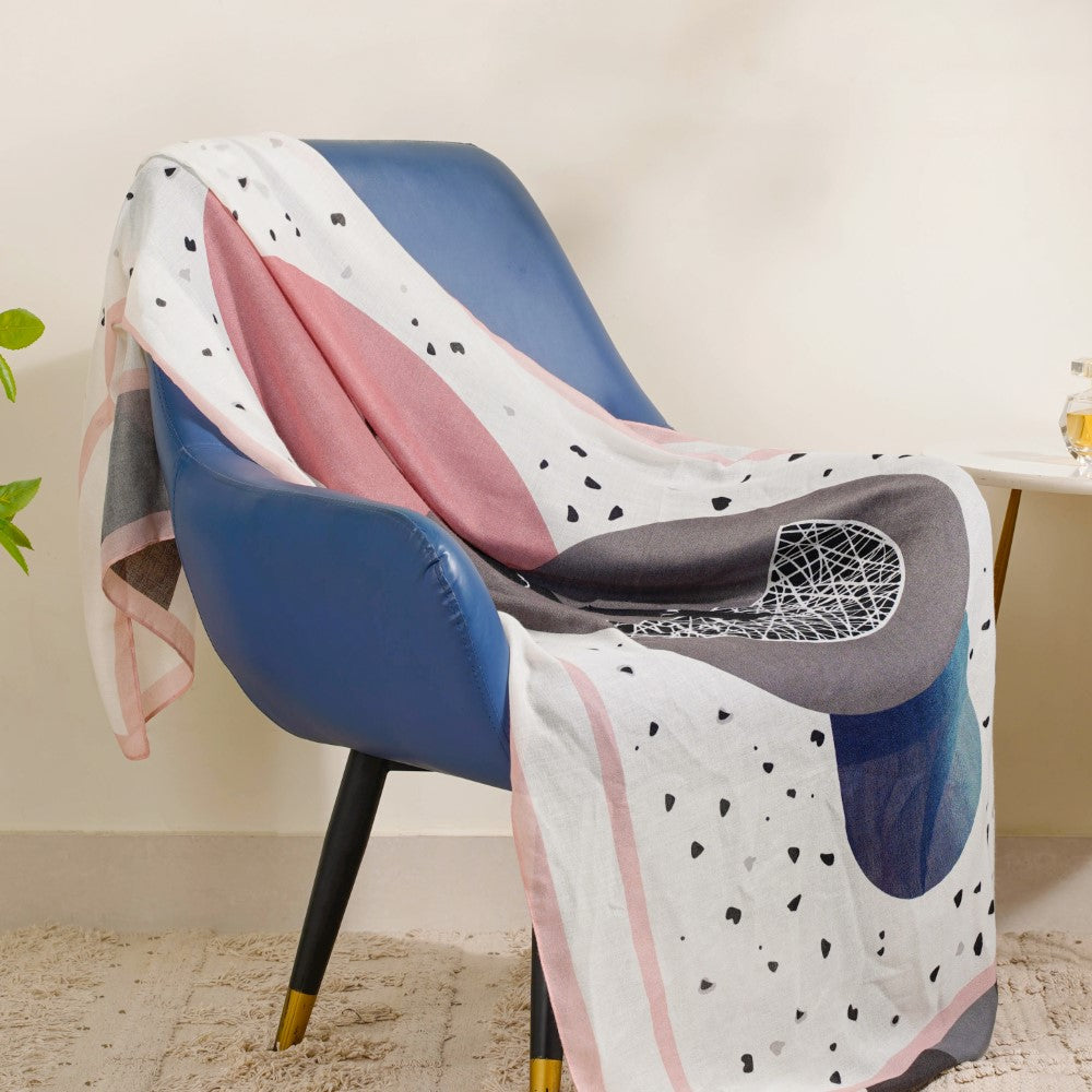 The light-hued colour palette of the blanket scarf, featuring pink, grey and blue, creates a beautiful colour contrast with the black and white colours of the scarf. The contrasting colour combination of the winter scarf offers a refreshing brightness that's highly elegant and visually soothing. Since white is the main colour of the ladies' scarf, pair it with dark-coloured outfits to create contrasting and eye-catching winter looks.
