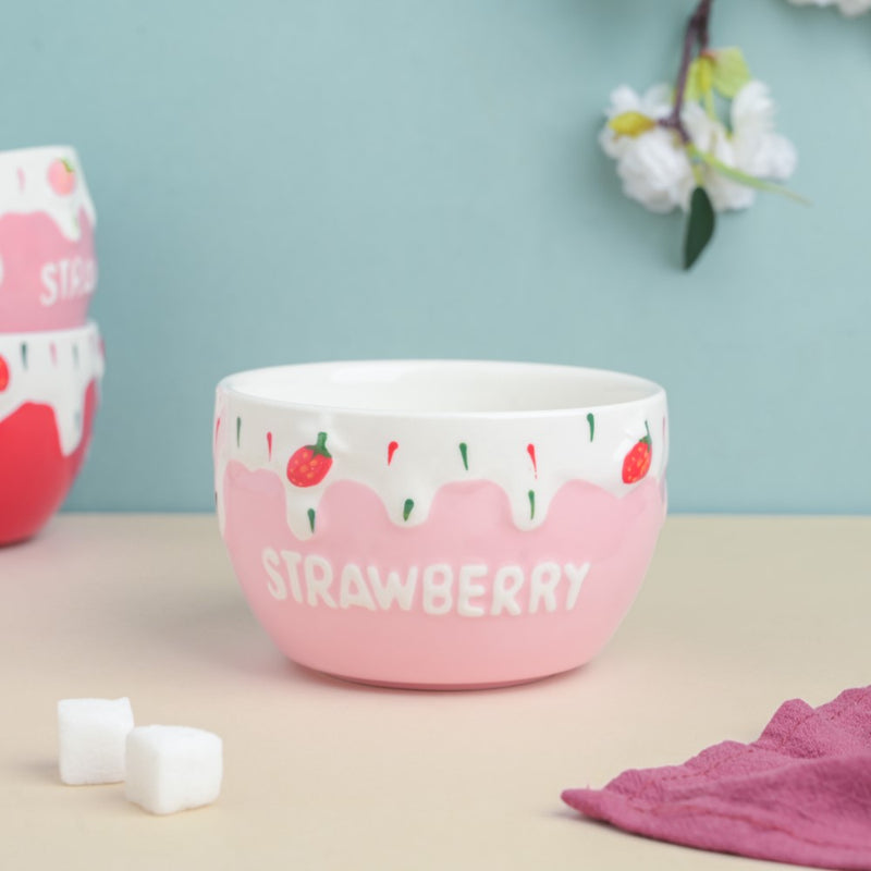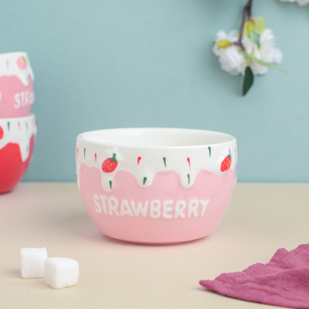 The light pink strawberry bowl lends a quirky feel to the table decor. From side bowl to snack bowl- the ceramic bowl can be used for a variety of usage. Serve an array of desserts such as sweetmeat, custard, pudding and icecream in the strawberry bowl. The strawberry bowl is microwave and oven safe, thus can be used for baking.