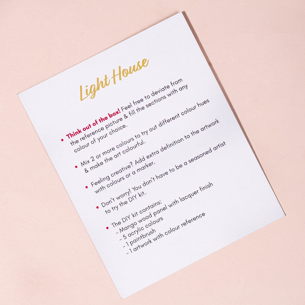 Our DIY painting kit includes one mango wood panel, five acrylic colors, one paint brush and one artwork with color reference and instructions. It enables you to add your own artistic touches and embellish the wooden object.