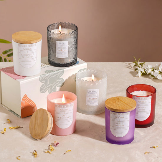 Enjoy the heavenly fragrances of nature for a zen-like experience with our scented candle jars. Infused with natural fragrance oils, these glass candle jars celebrate the authentic aroma of different natural elements to help you relax while rejuvenating your olfactory senses. Our fragrance candles are 100% eco-friendly with no emission of toxic fumes, thanks to the lead-free wick and vegan organic soy wax. Light up our candle jars to create a soothing ambience and experience the goodness of aromatherapy.