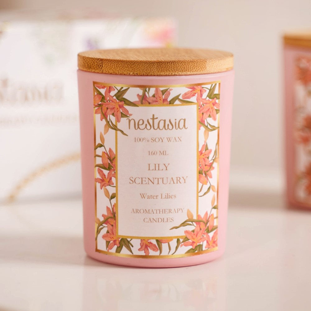 With this botanical-inspired scented candle, enter a lovely floral garden. This candle's sweet and fresh fragrance of water lilies brings the beauty of nature to life. The Lily Scentuary votive candle has a sumptuous flowery aroma that gives your space a fresh and clean fragrance. The product works well to continuously emit a soothing fragrance into your house, be it the bathroom, workplace, or simply the dining table. The candles are made with soy wax in a natural white colour, which melts to a cosy orange light while the jar features matte pink colour. The candle jar comes with a bamboo lid that prevents the candle from gathering dust while preserving the fragrance of the candle.