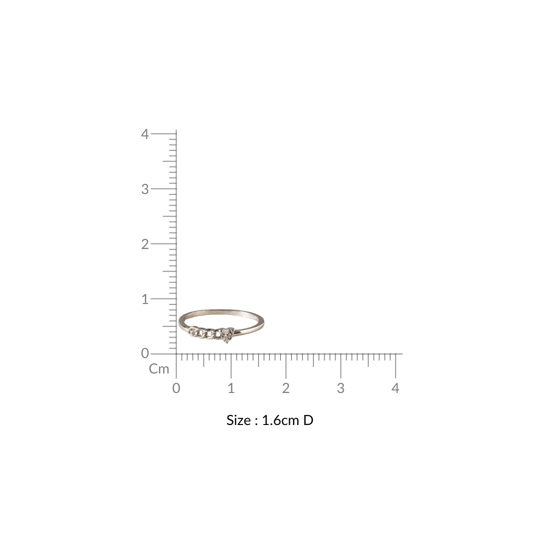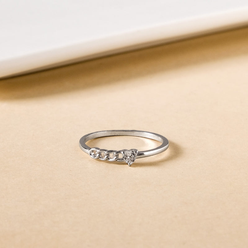 A little edge, a little romance—this silver-toned ring strikes the perfect balance. With a sleek, minimal band featuring a chain-like pattern, it adds just the right amount of texture. And right where the chain ends, a delicate stone heart takes center stage, held securely by a silver clasp. Simple yet full of character, this ring is made to be worn your way—stack it up or let it shine solo.
