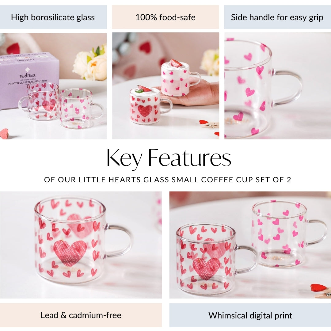 Little Hearts Glass Small Cup Set Of 2 140ml