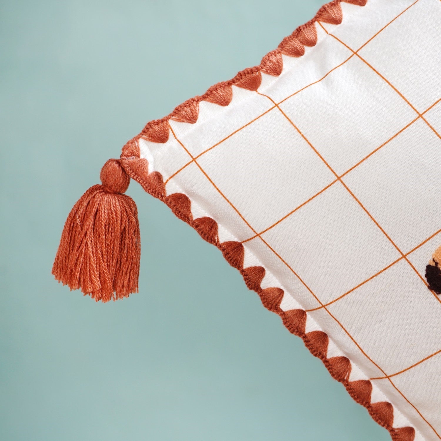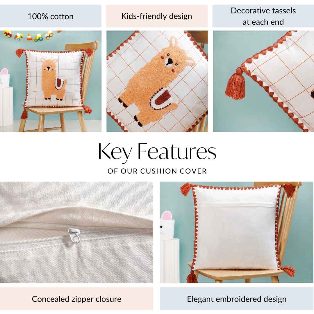 Llama Embroidered Cotton Cushion Cover With Tassels 42x42cm