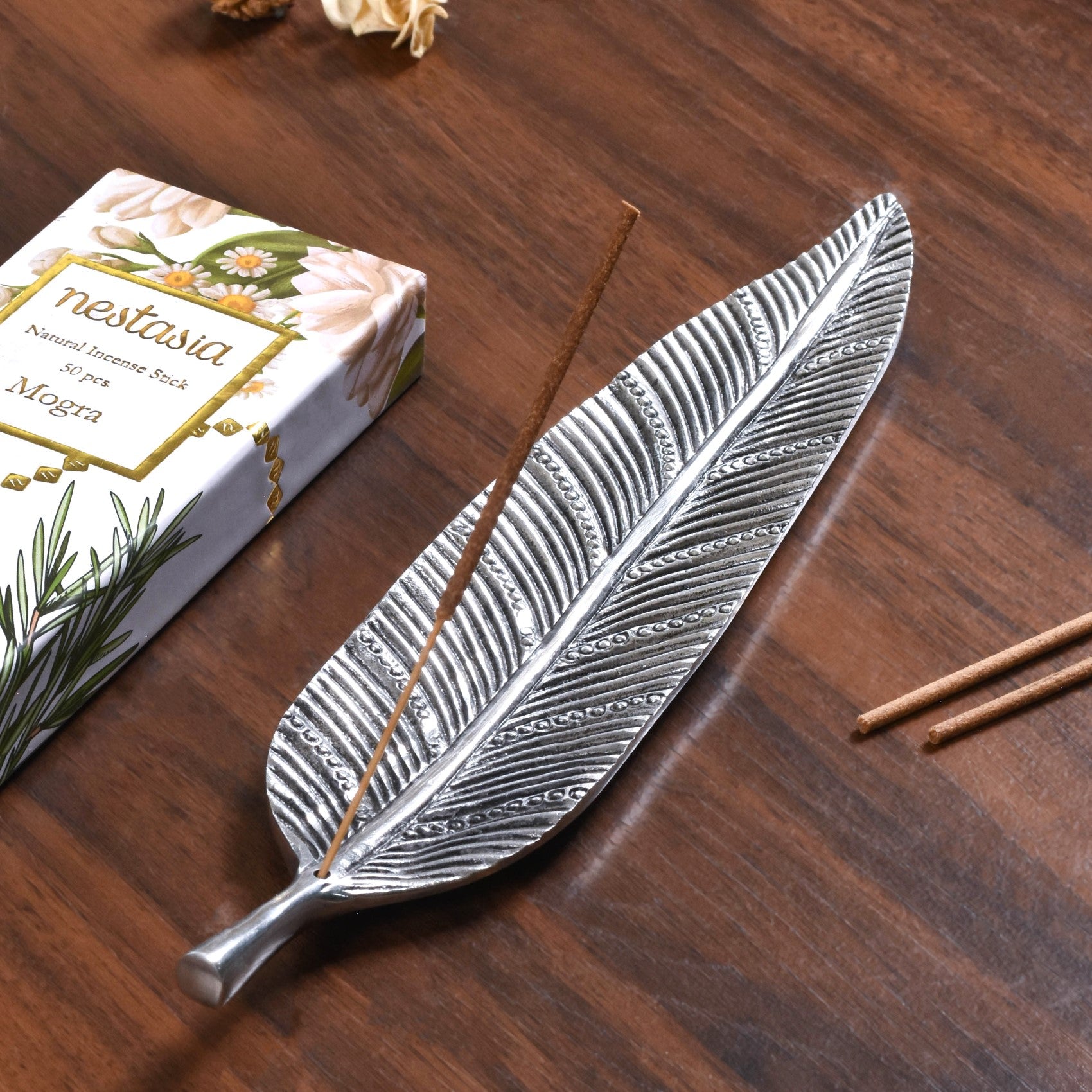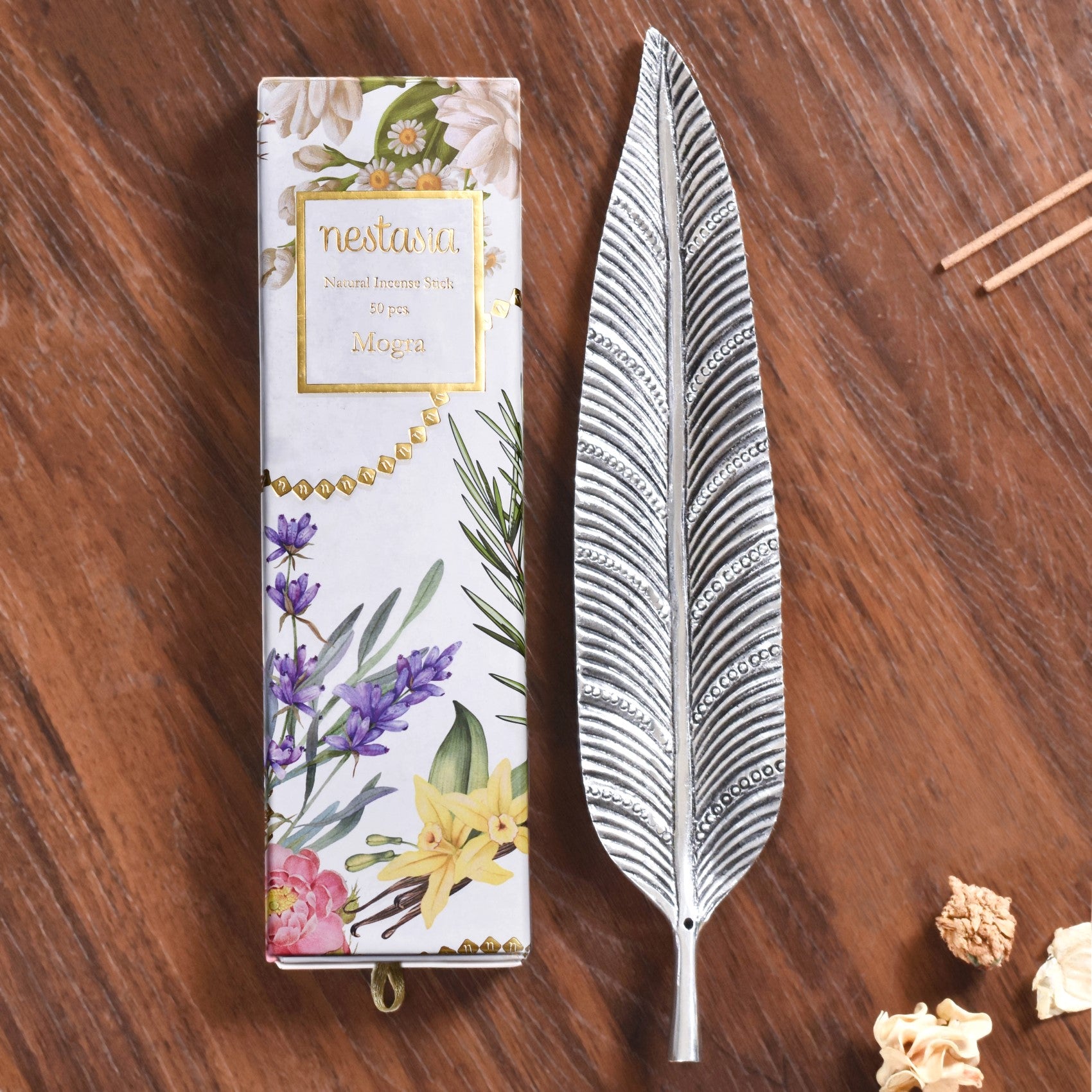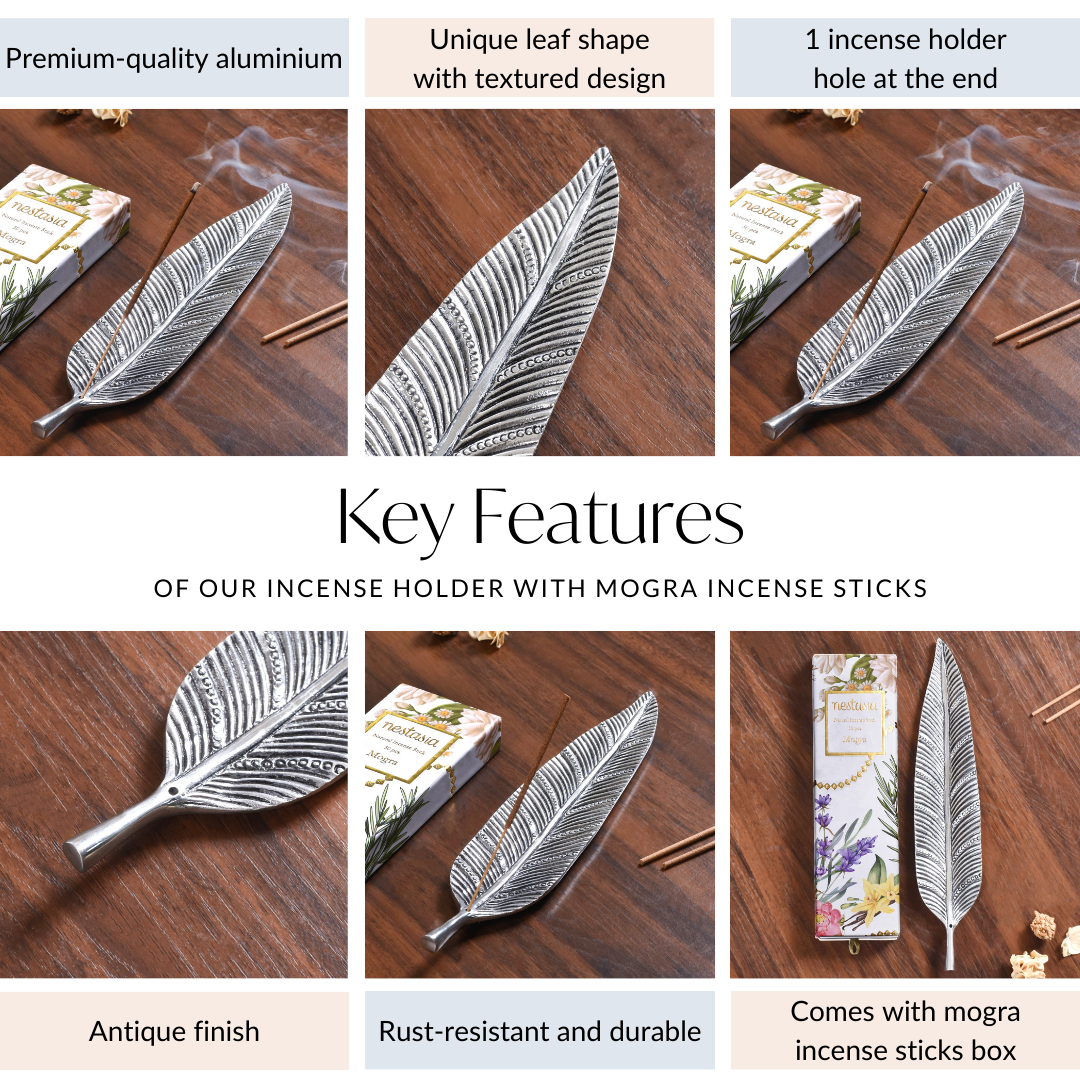 Long Leaf Incense Holder With Mogra Incense Sticks