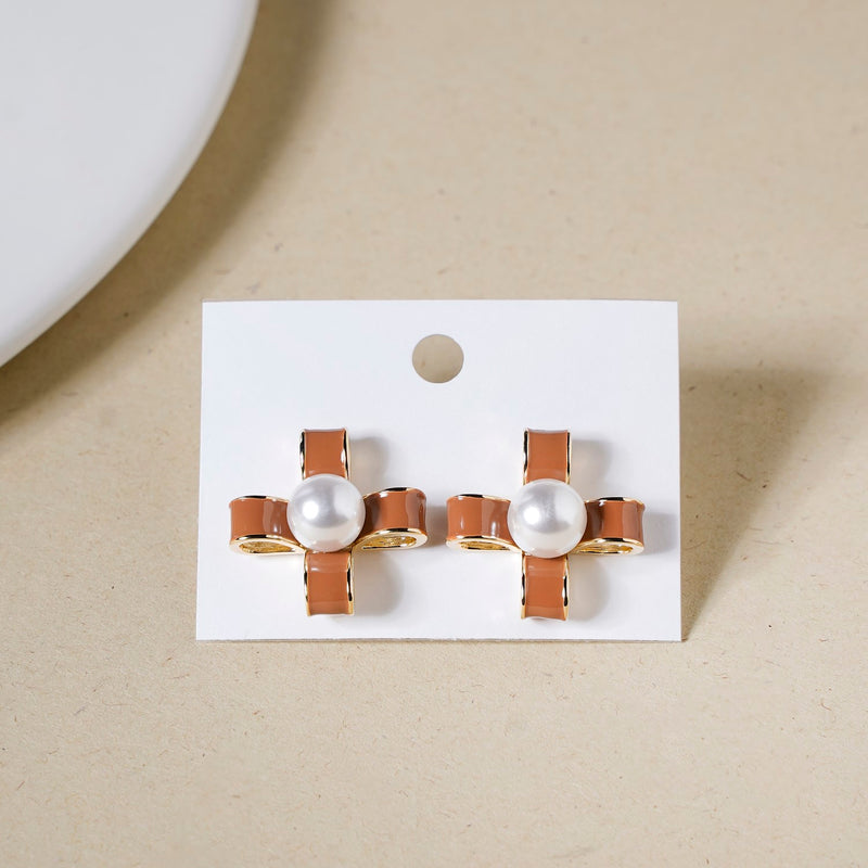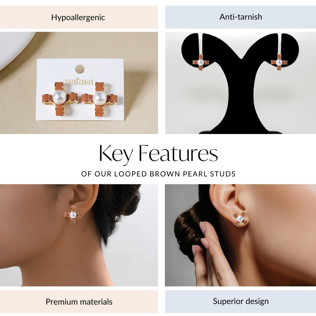 Nestyle: Let these brown-hued pearl studs be the understated star of your outfit. Pair them with a cream or beige satin blouse for a soft, elegant contrast, or go bold with an espresso-toned blazer for a luxe monochrome effect.