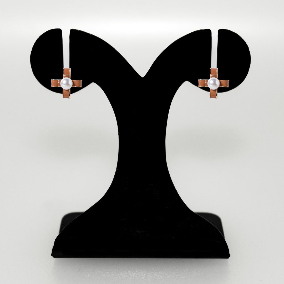 Subtle yet striking, these stud earrings redefine effortless sophistication. Inspired by the warmth of vintage elegance, the rich brown PVC studs bring a unique depth to the design, offering a modern take on classic couture jewelry. Delicate loops encircle the pearl at the center, creating a harmonious balance of structure and grace. Whether paired with a crisp white blouse for daytime polish or an elegant evening dress, these earrings add a refined touch to any look—timeless, yet refreshingly contemporary.