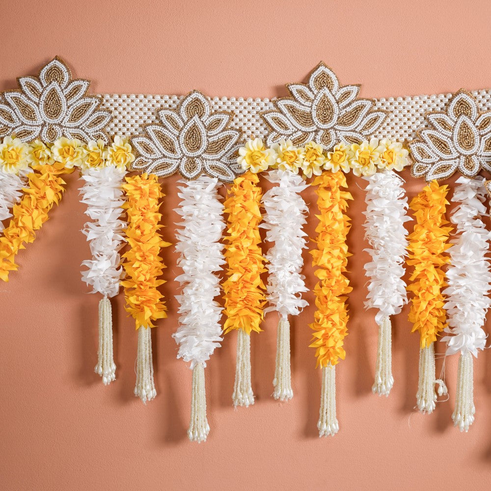Is the pearl-studded toran suitable for outdoor decorations during festivals like Holi or Navratri?