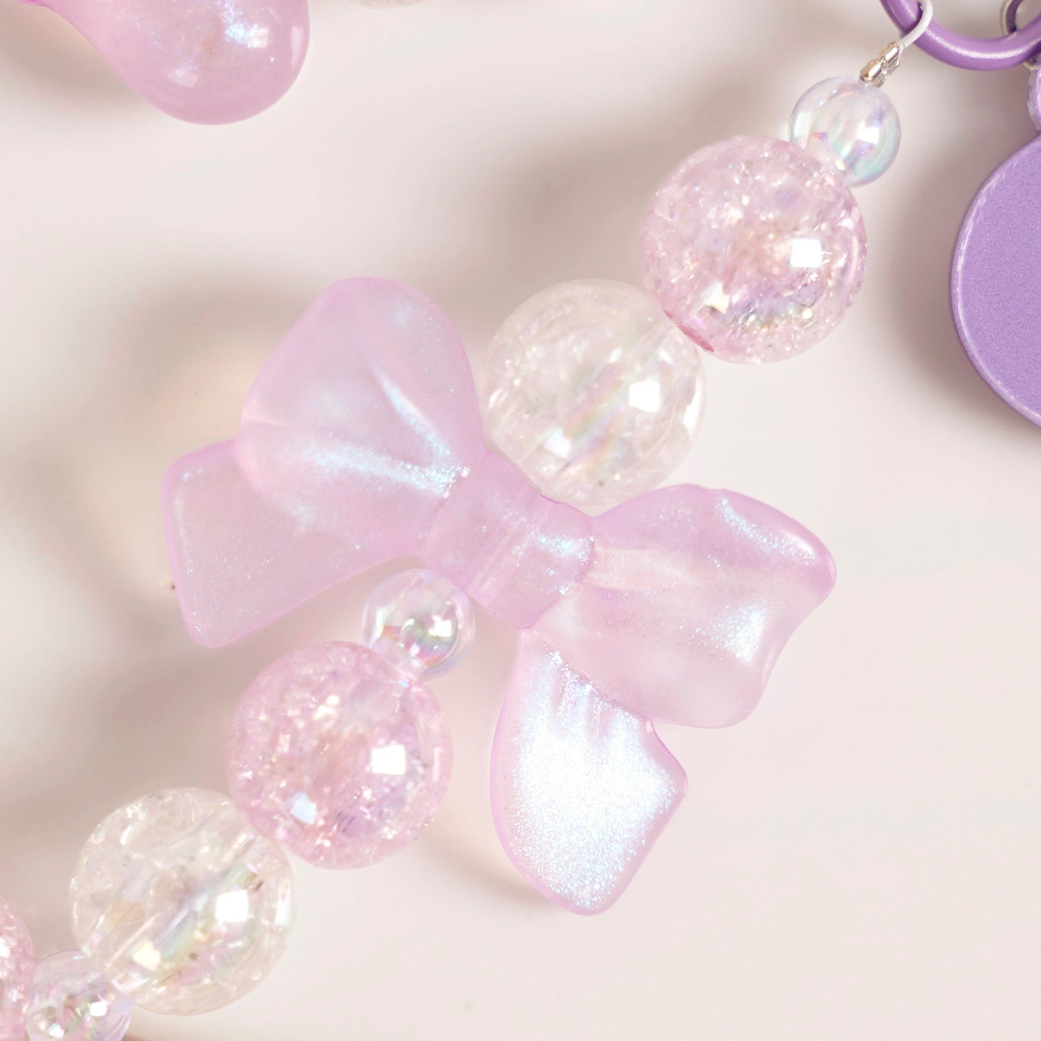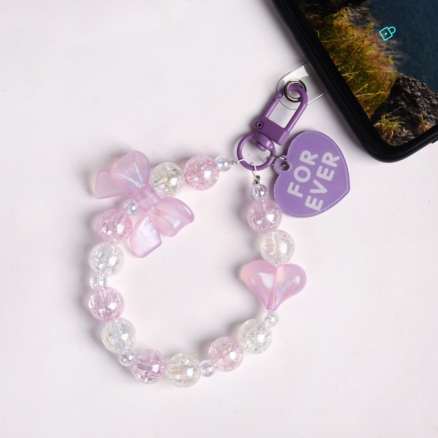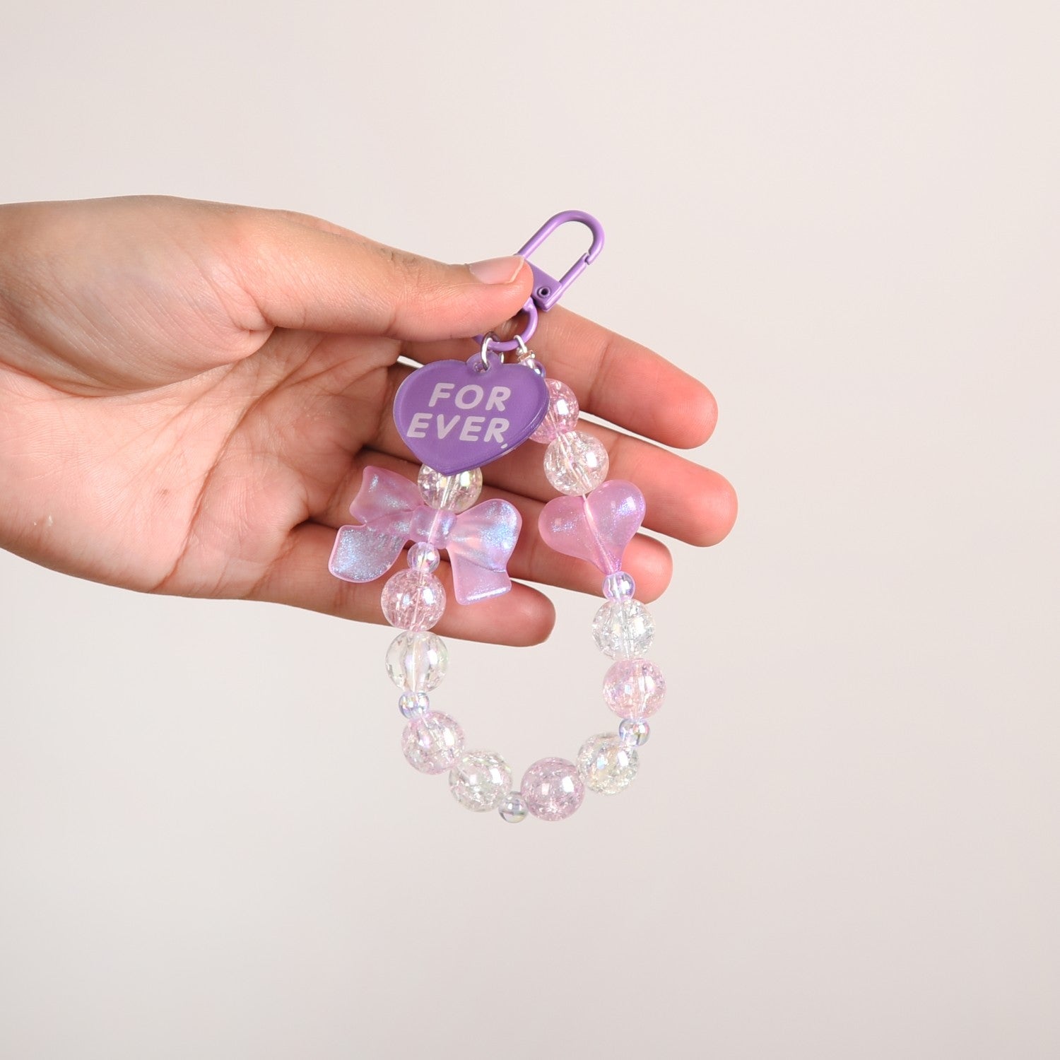 Carry a sprinkle of charm wherever you go with this dazzling keychain! Featuring a sparkling dangler with lavender and transparent beads, its iridescent shimmer catches the light like magic. A lavender heart charm with the message of "Forever" adds a sweet touch of sentiment to your style.