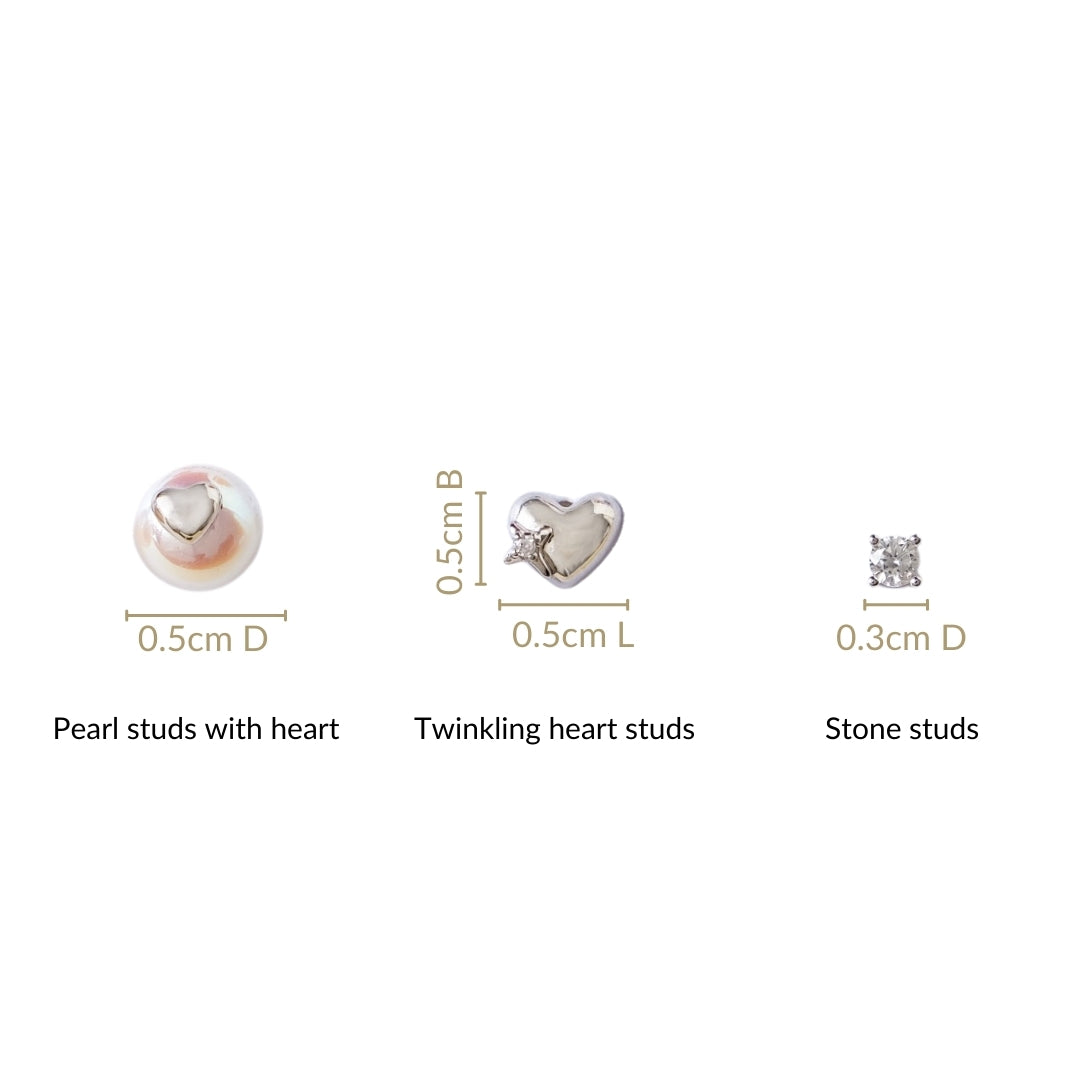 Twinkling heart studs: 0.5cm L x 0.5cm B