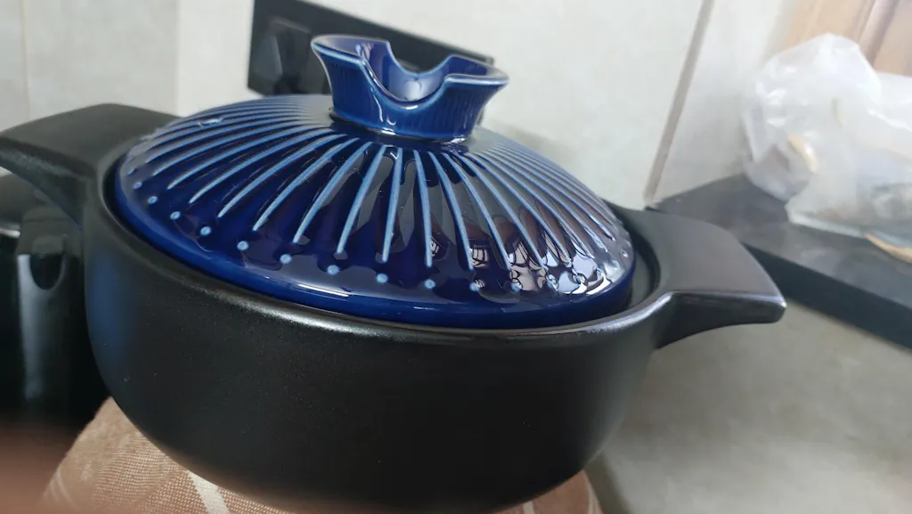 Benefits: Designed to deliver both function and flair, this ceramic pot is perfect for cooking slow-simmered stews, curries, and one-pot meals. The ceramic body retains heat for even cooking and longer warmth at the table. The steam vent promotes moisture balance, preventing sogginess. It's microwave-friendly, with an easy-to-clean glaze that resists staining. Durable and elegant, it makes everyday meals feel festive and is perfect for entertaining.