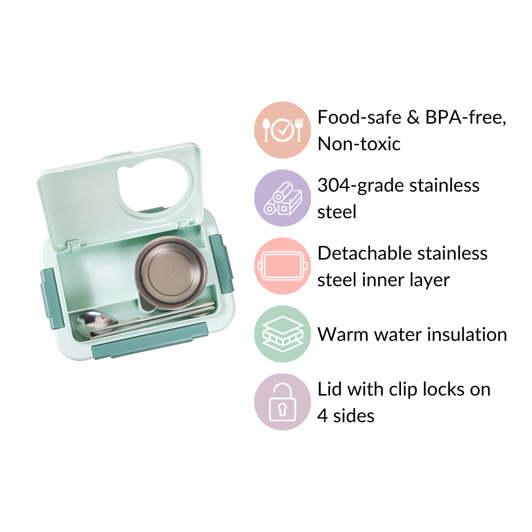 Yes, the lunch box is equipped with innovative warm water insulation technology, which allows you to enjoy hot and freshly cooked meals even hours after packing them. The lunch box comes with a double-wall design, and between these walls, you can pour warm water to create an insulating barrier. This barrier effectively retains heat, keeping your food warm until you're ready to savour it.