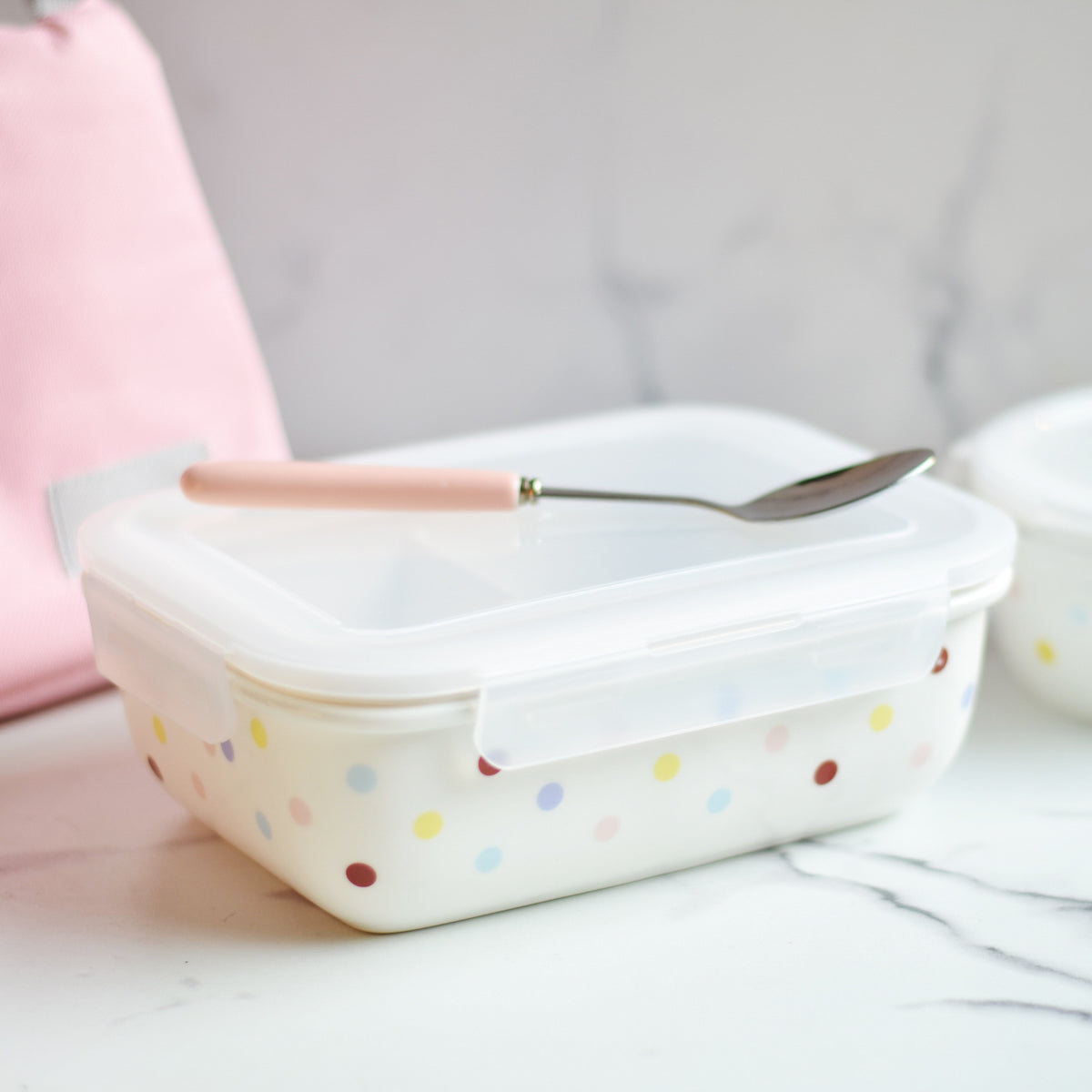 Size: Lunch box - 19cm x 13cm x 6cm height, 12cm diameter x 6cm height box, 17cm spoon, 18.3cm chopsticks, 20cm L x 16cm B x 17cm H bag