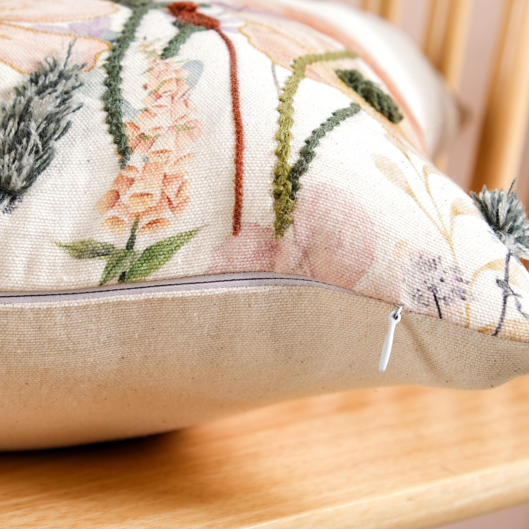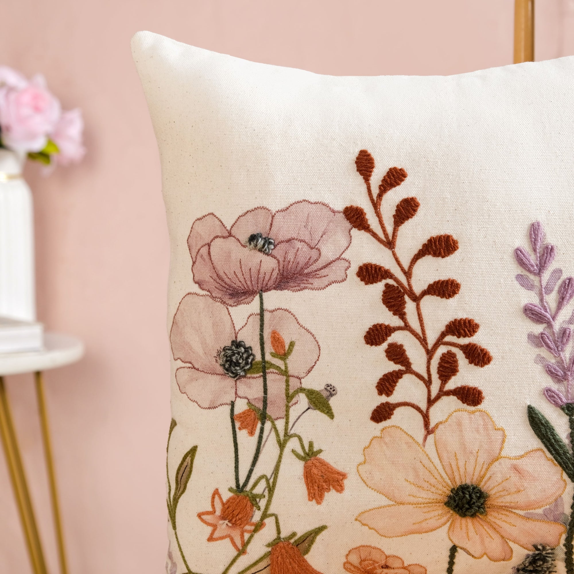 Adorned with blooming wildflowers in earthy, nature-inspired hues, the cushion cover beautifully blends textured charm with artistic detailing. Perfect for adding warmth and character, this cover makes any corner a cosy, garden-inspired retreat.