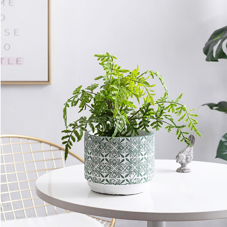 Add some greenery to the indoor spaces by planting monstera, snake plant, money plant or any succulents in this lush green ceramic plant pot. Green patterns on white background create a subtle look on the pot. Use the plant pot as a flower vase and use it as a centrepiece for the fine dining set-up. One can gift this pot as a birthday or anniversary present.