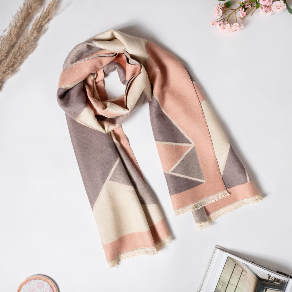 The eye-soothing colour combination of pink, white, and grey of the polyester scarf makes it highly attractive and can pair well with formal outfits. The elegant yet neutral colour palette of the winter scarf makes it easier to wear the scarf with any light or dark-coloured outfits to create a sharp and fashionable look. Not to mention, the polyester fabric of the ladies' scarf offers a smooth and soft texture, making it an ideal winter accessory.