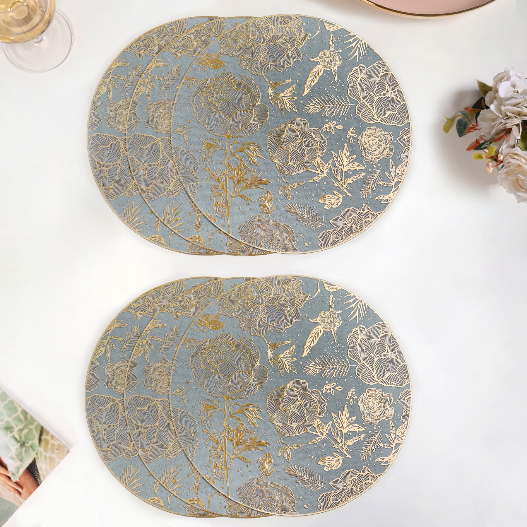 No, the mats are made from flexible yet structured PVC that resists warping and creasing. They maintain their shape and cutwork pattern even with regular use and storage.