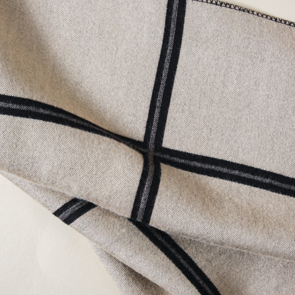 Nestip: Wear the blanket scarf with a beige long overcoat to create a classy and sharp formal winter look.