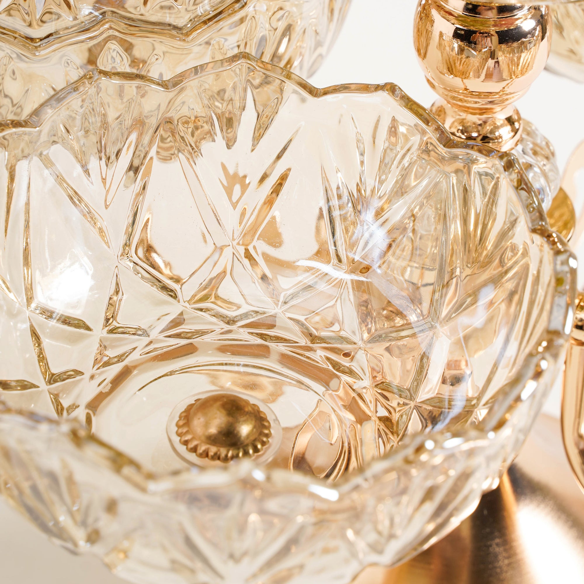 Elevate your table setting with our exquisite decorative glass bowl, complemented by a stunning metal stand. Perfect for showcasing both style and function, this piece is a blend of elegance and practicality.
