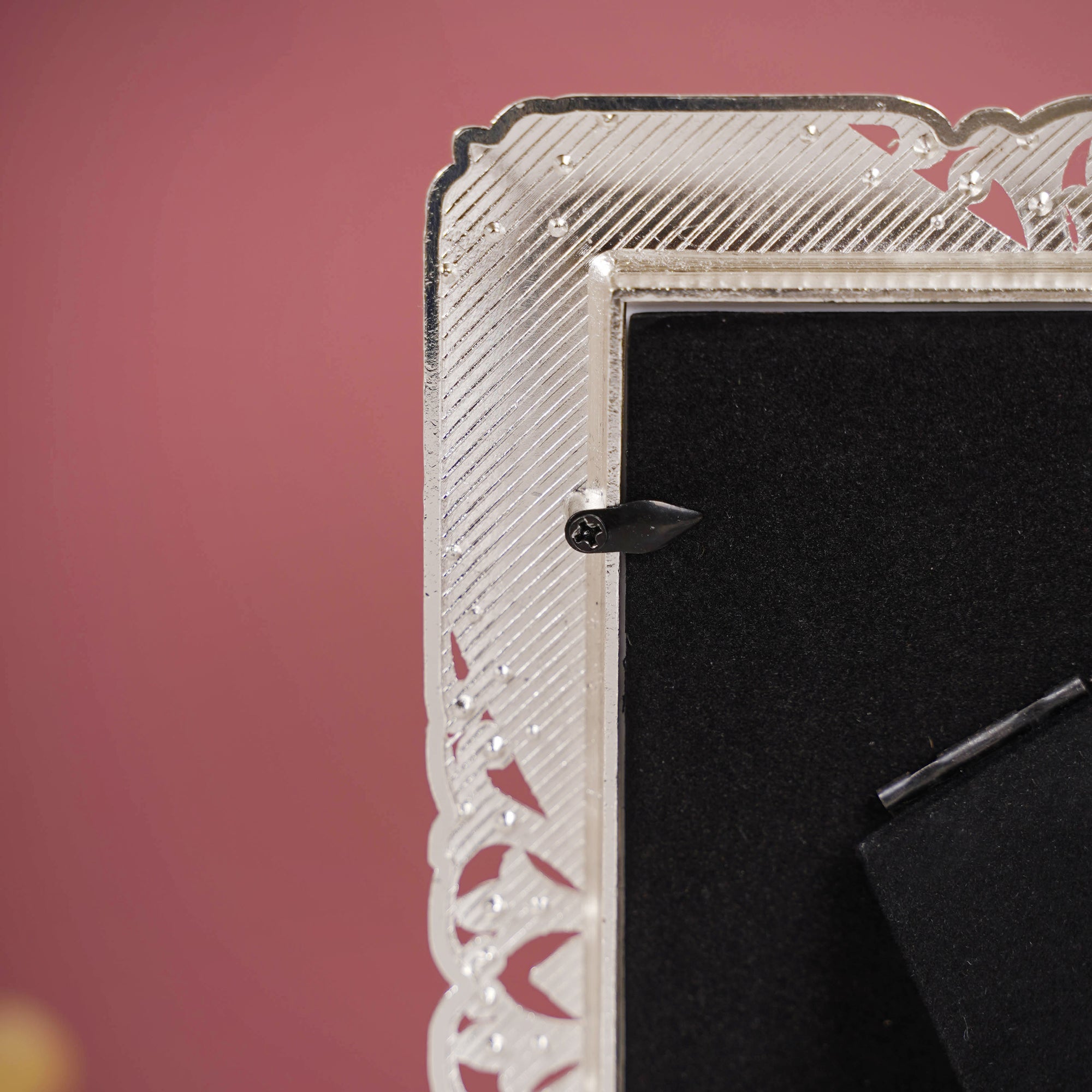 With broad borders having intricate, silver-hued motifs at the center, the photo frame heightens the aesthetic appeal of any image kept inside. Reminiscent of the vintage era, one can use the photo case to bracket the snaps clicked on a ceremonial occasion or a felicitation program.
