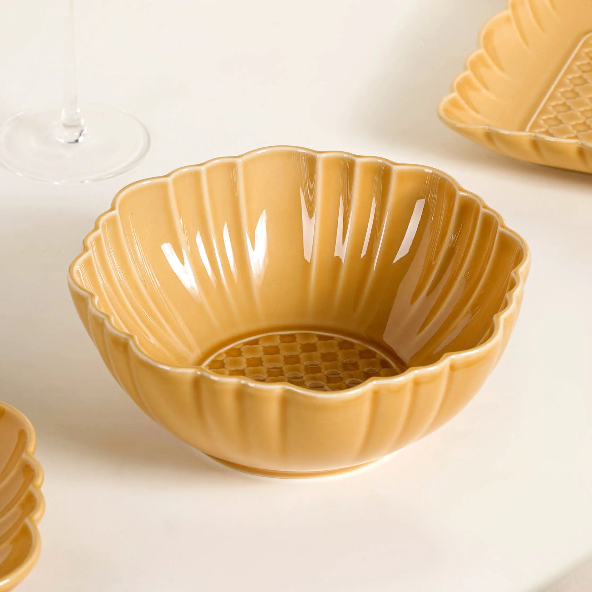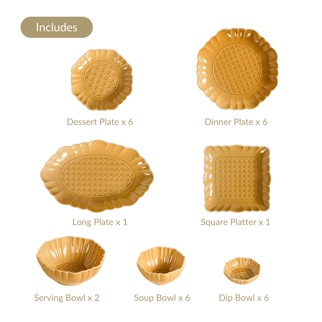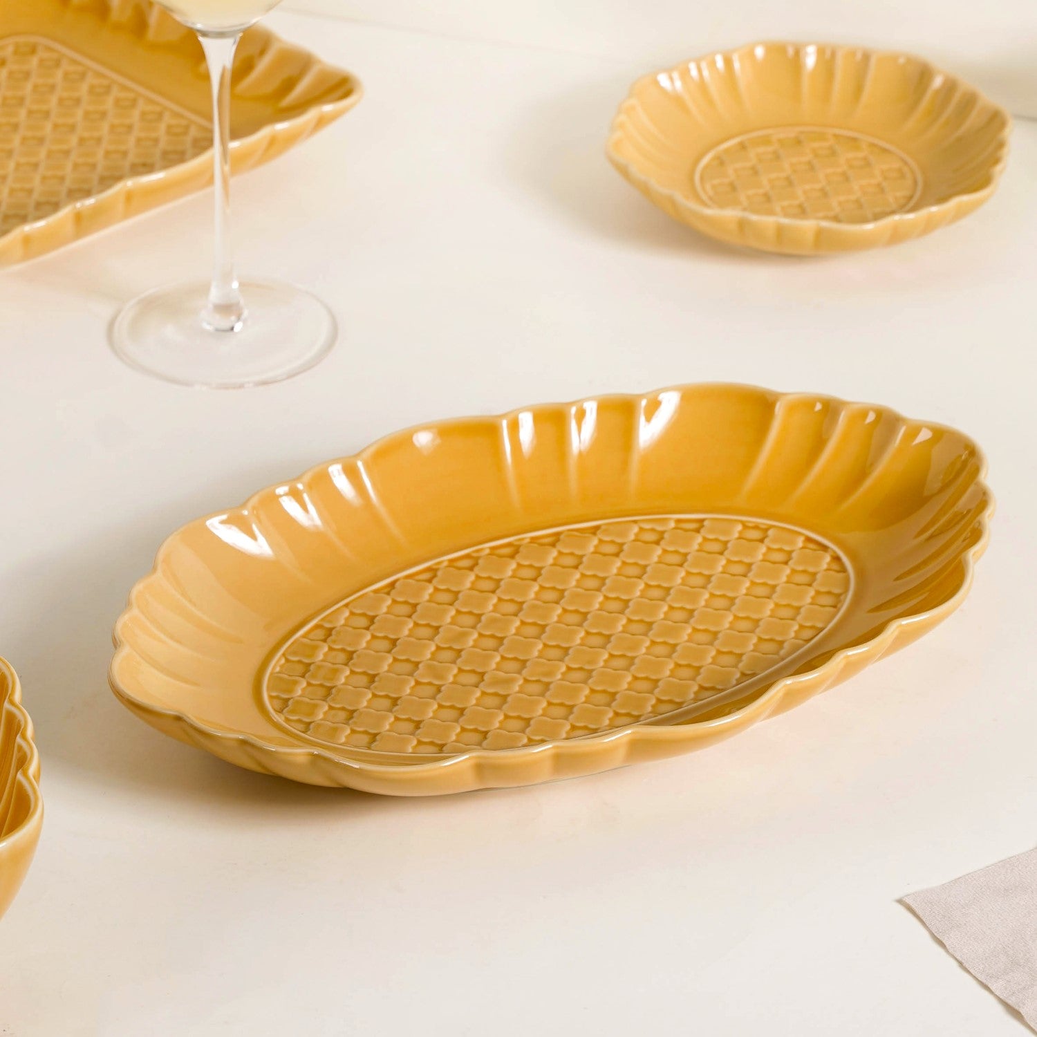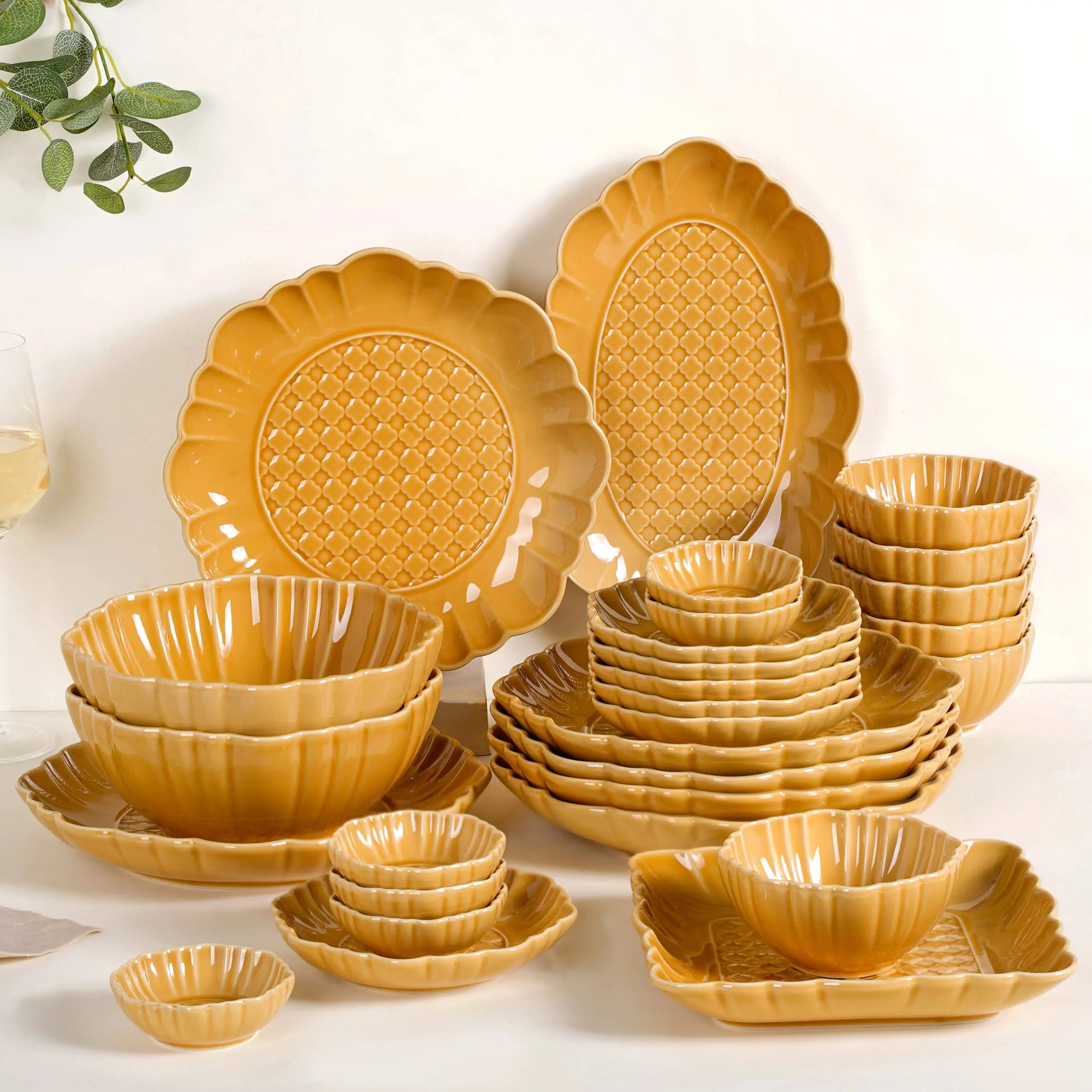 Introducing our exquisite ceramic dinner sets – where functionality meets elegance. Crafted to the highest international standards, these sets are more than just dinnerware; they're a testament to quality and style. Made from 100% food-grade, non-toxic, and BPA-free ceramic, they ensure the safety of your meals. With a premium-quality material and a hand-glazed surface, each piece exudes durability and timeless sophistication. The scallop-shaped design and textured Moroccan art motifs add a touch of artistry to your table.