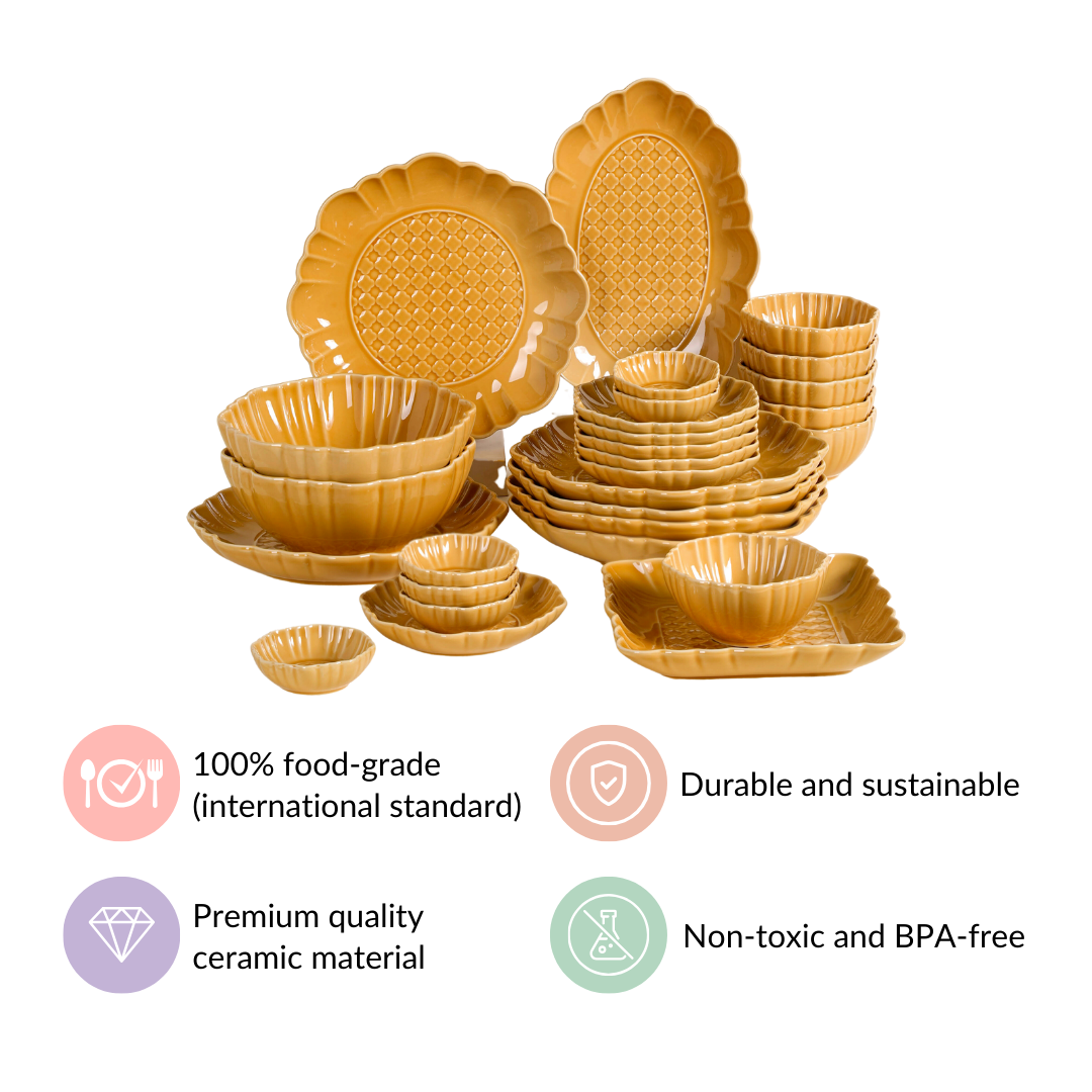 Yes, our 28-piece dinner set is not only safe but exceptionally so for serving food. It's crafted from 100% food-grade ceramic material, meeting international safety standards. This premium-quality dinnerware is durable and sustainable, ensuring long-lasting use. It's completely non-toxic and BPA-free, guaranteeing that your meals are free from harmful chemicals.