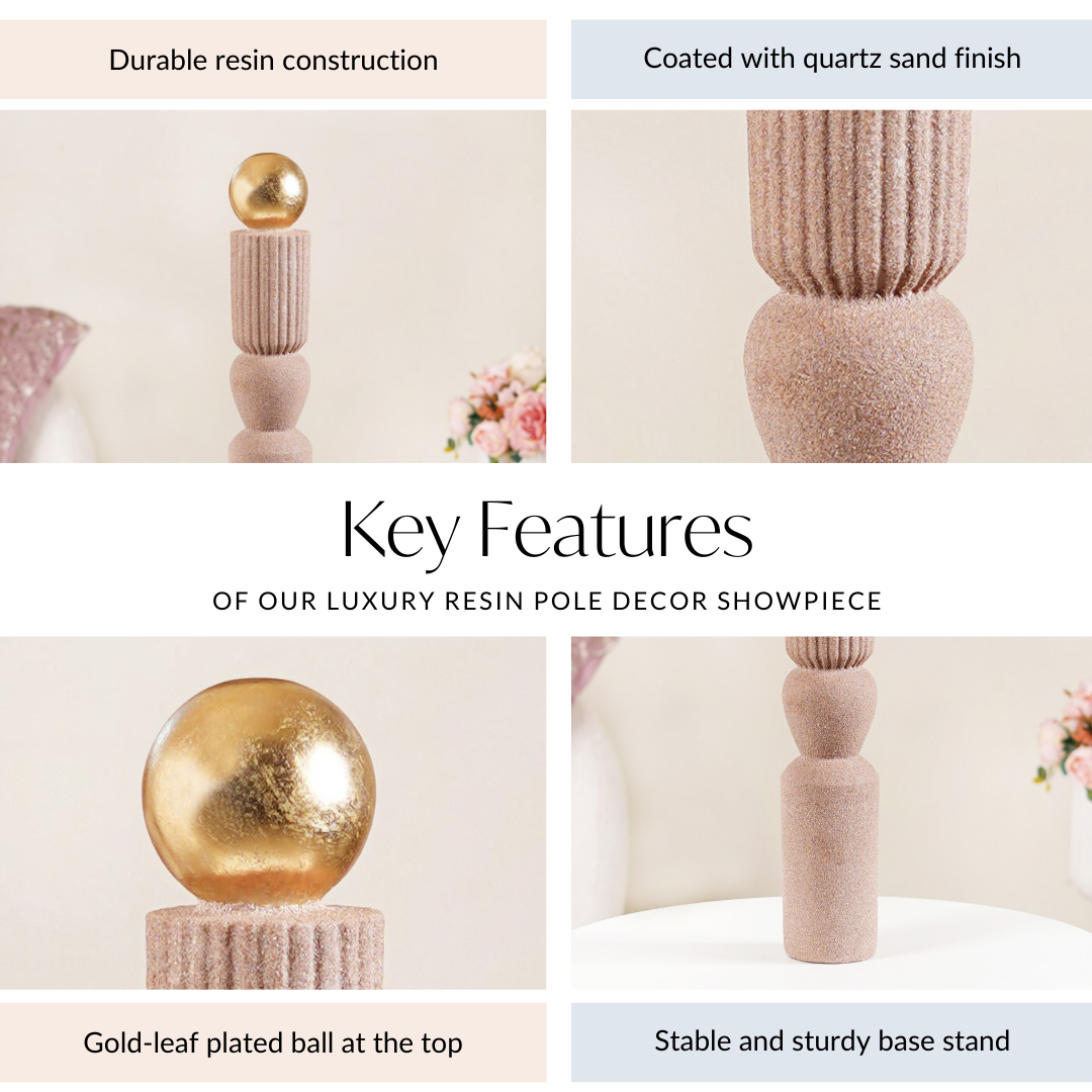 Design: Our pole decor sculpture features a sleek quartz sand coating and a fancy gold-leaf plated ball on top. The design is both modern and timeless, perfect for enhancing your living room or office with a refined touch.