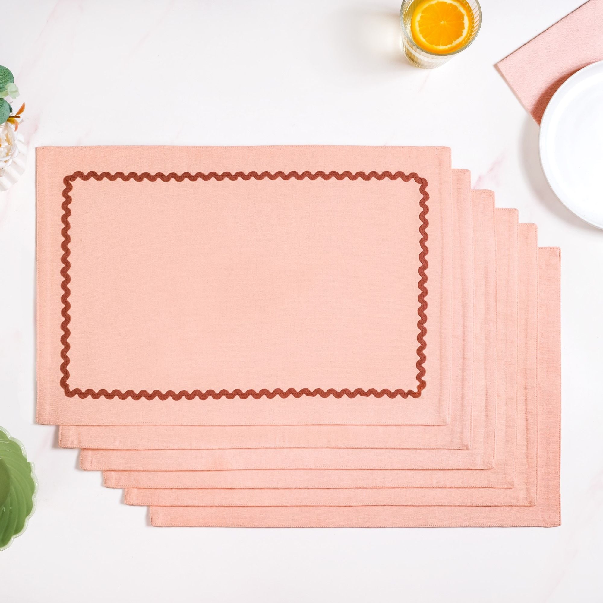 Madeline Rick Rack Peach Set Of 6 Reversible Cotton Placemats
