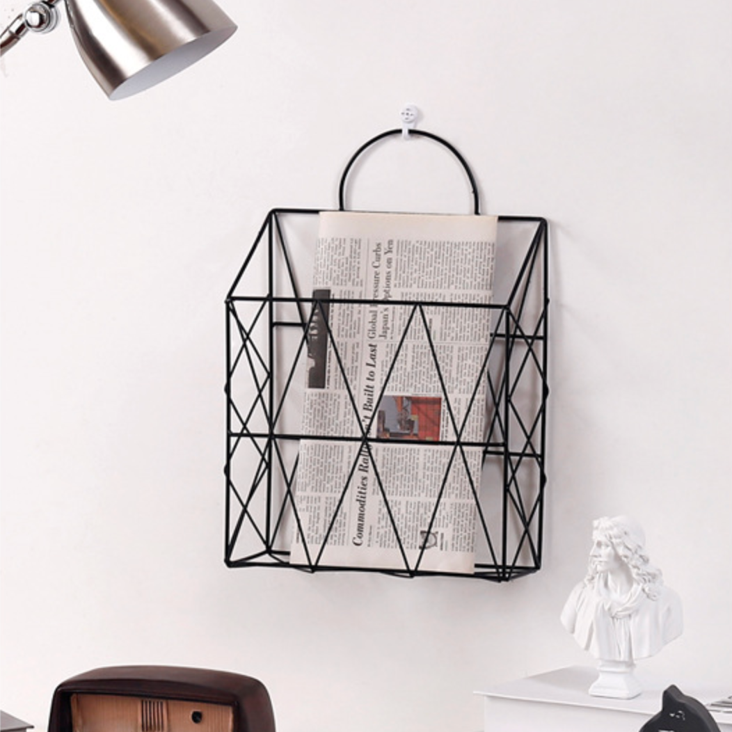 The magazine or newspaper organiser helps to clear clutter at home as well as add a modern aesthetic to the space. The magazine holder is made of black metal wire in a triangle pattern with a handle. It can also be used as an office organiser for keeping papers, documents, letters and more.