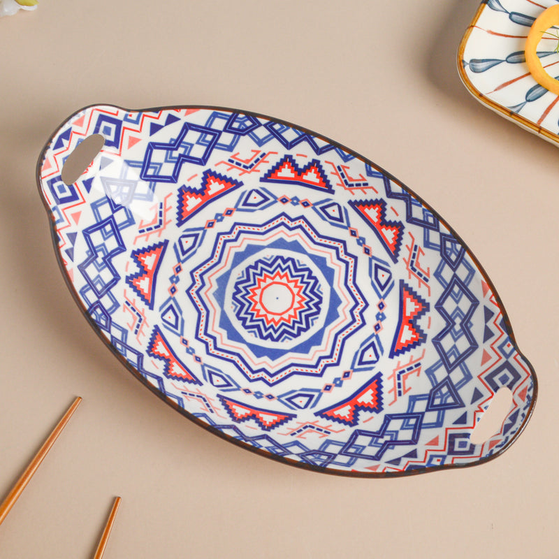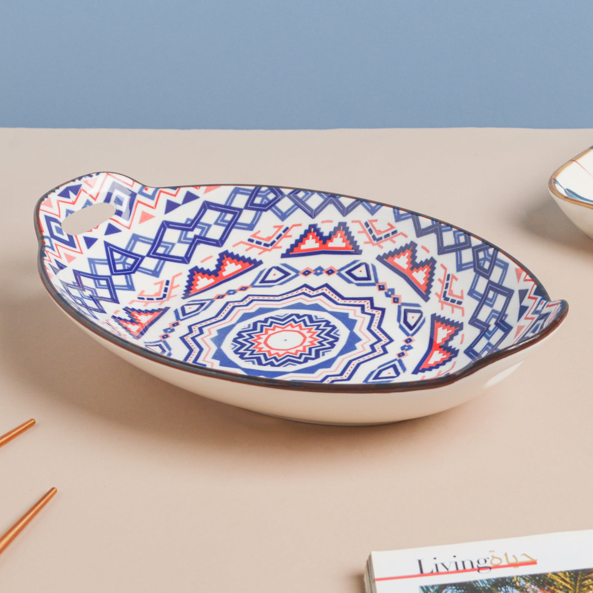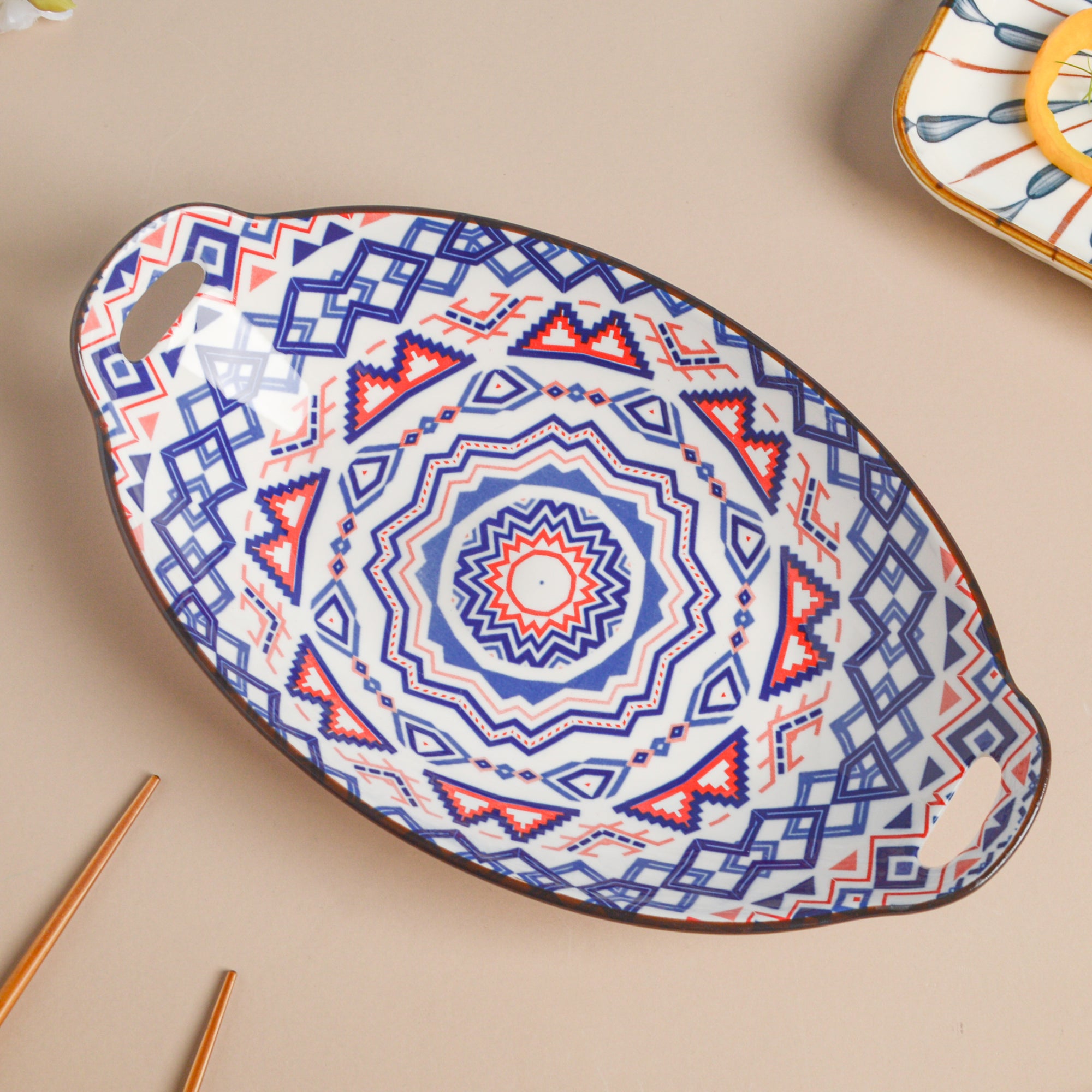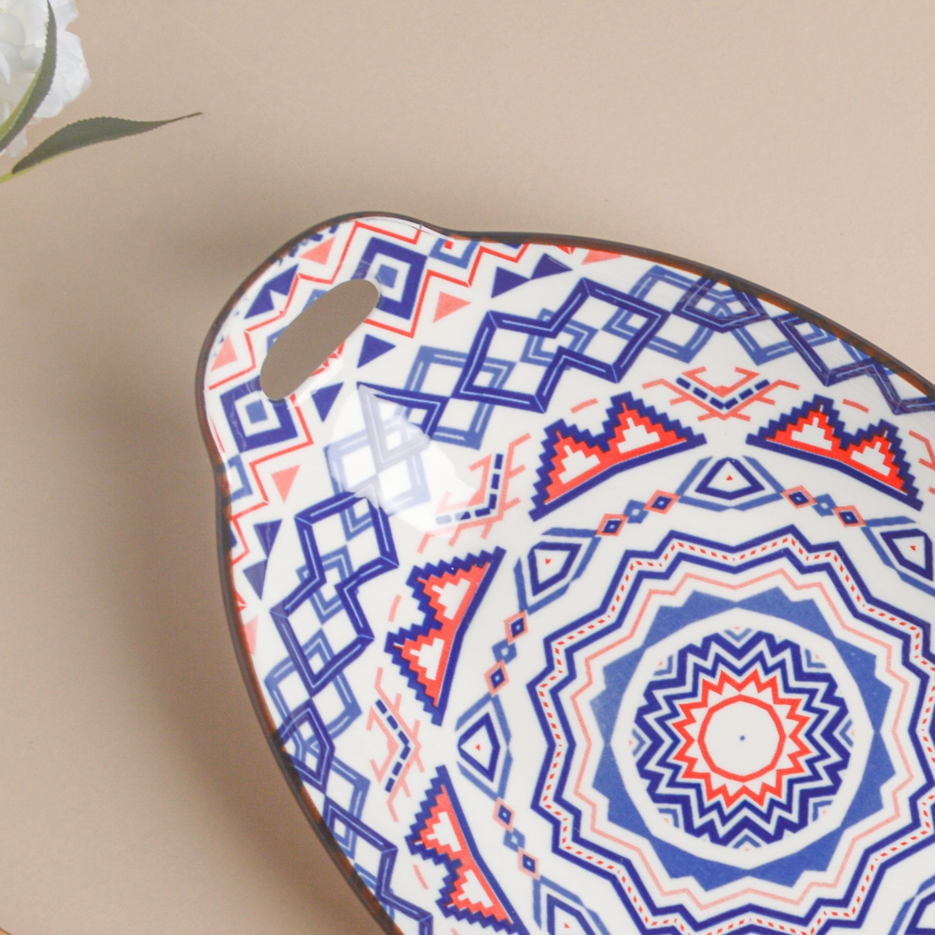 Nidhi gandhi Mandala Blue Ceramic Baking Plate With Handle