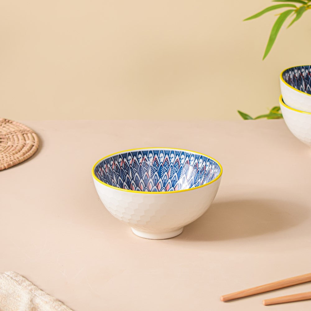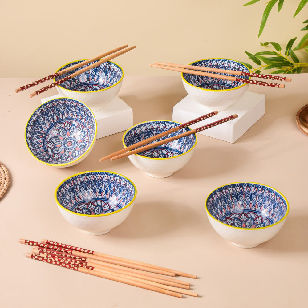 Yasmin Patni Mandala Ceramic Bowl And Chopstick Multicolour Set Of 6