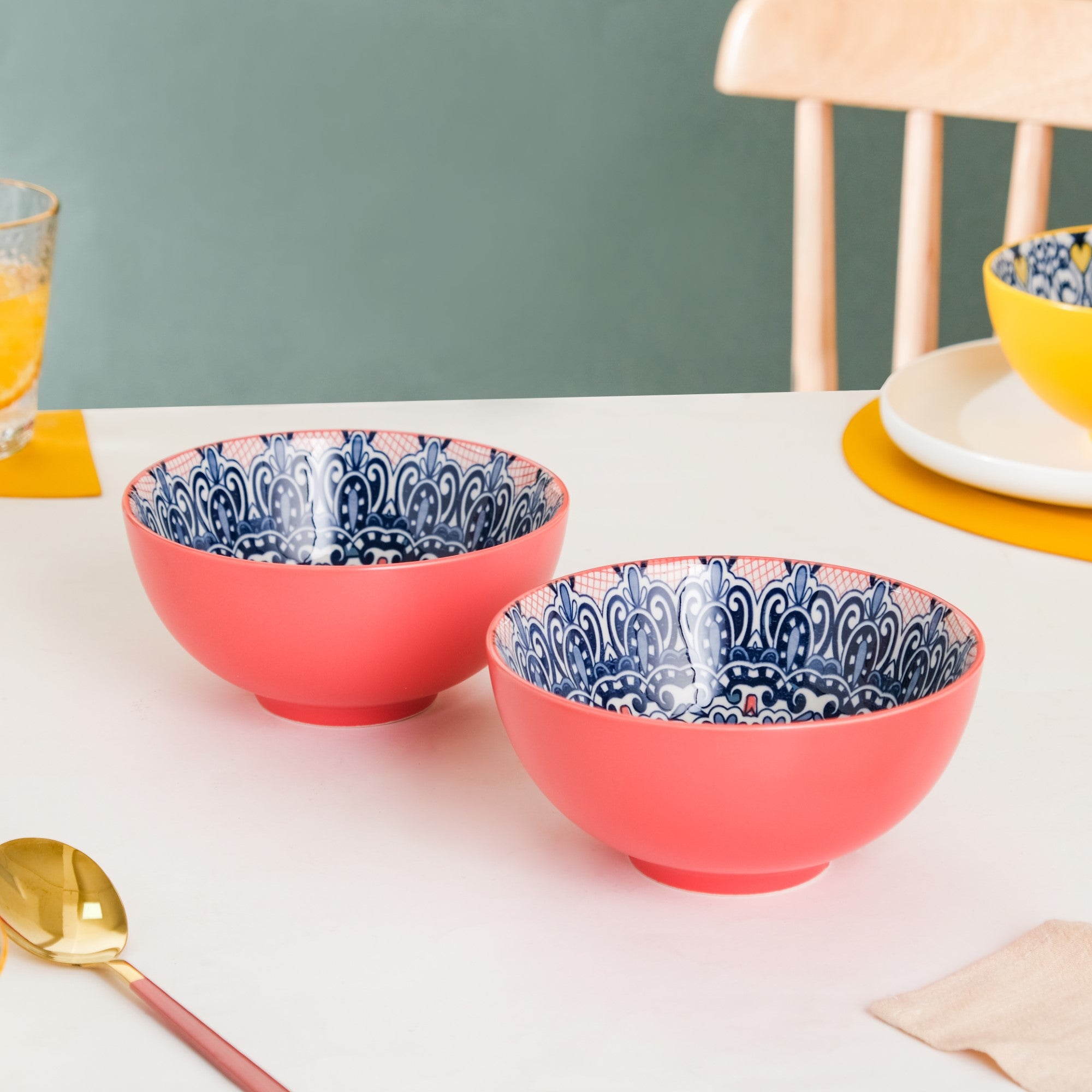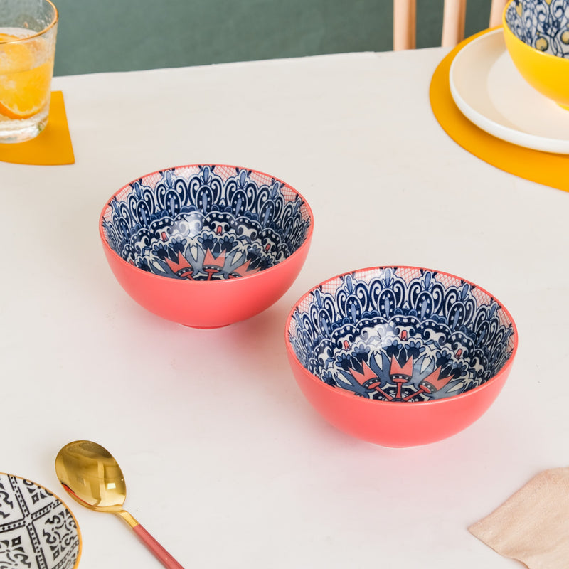 Mittal vikani Mandala Ceramic Snack Bowl Pink 400ml Set Of 2