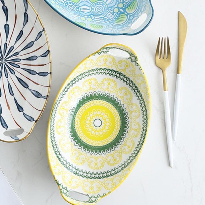 A ceramic mandala baking dish can be used in an oven. It can resist high heat, making it simple for you to bake your favorite delicacies.